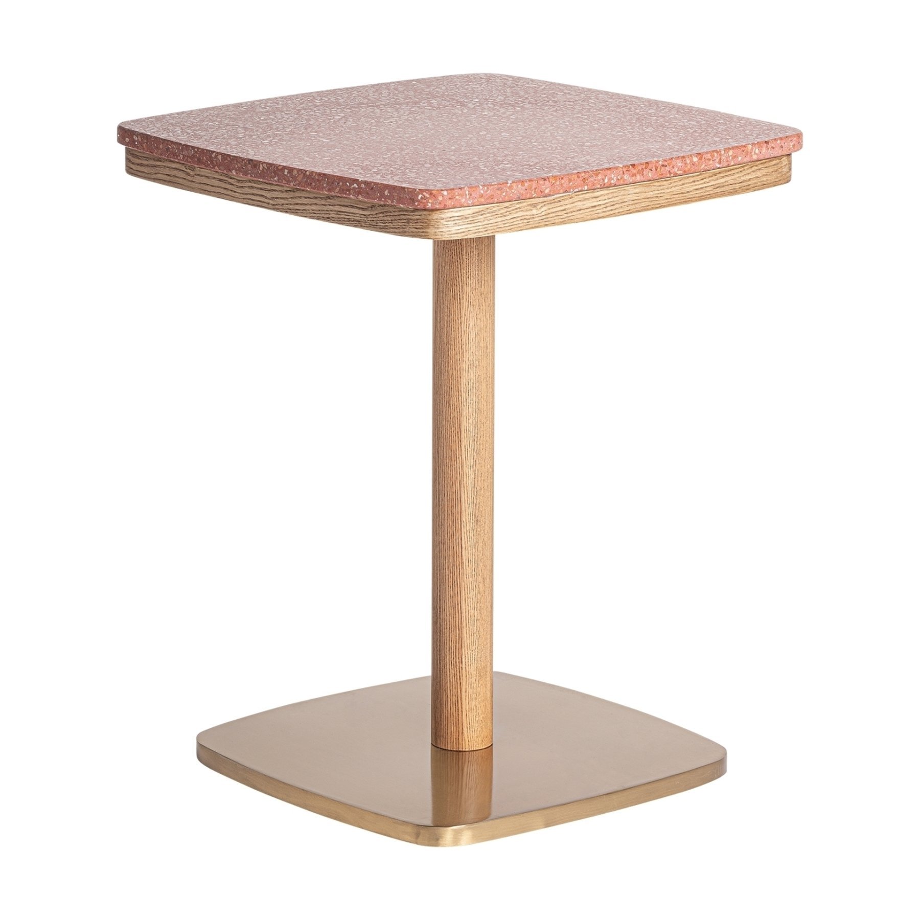 Барный стол Alferce, цвет красный/золото, стиль арт-деко. Изготовлен из терраццо в сочетании со сталью и деревом.