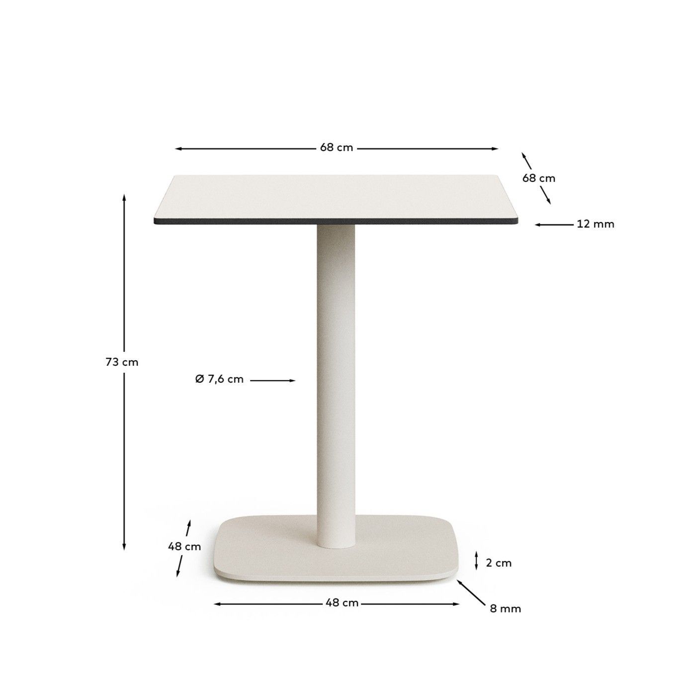 Стол со столешницей из компактной плиты HPL с двух сторон толщиной 12 мм. Плиты HPL устойчивы к пятнам, ударам, истиранию и высоким температурам. Антибактериальный и подходит для открытых пространств.