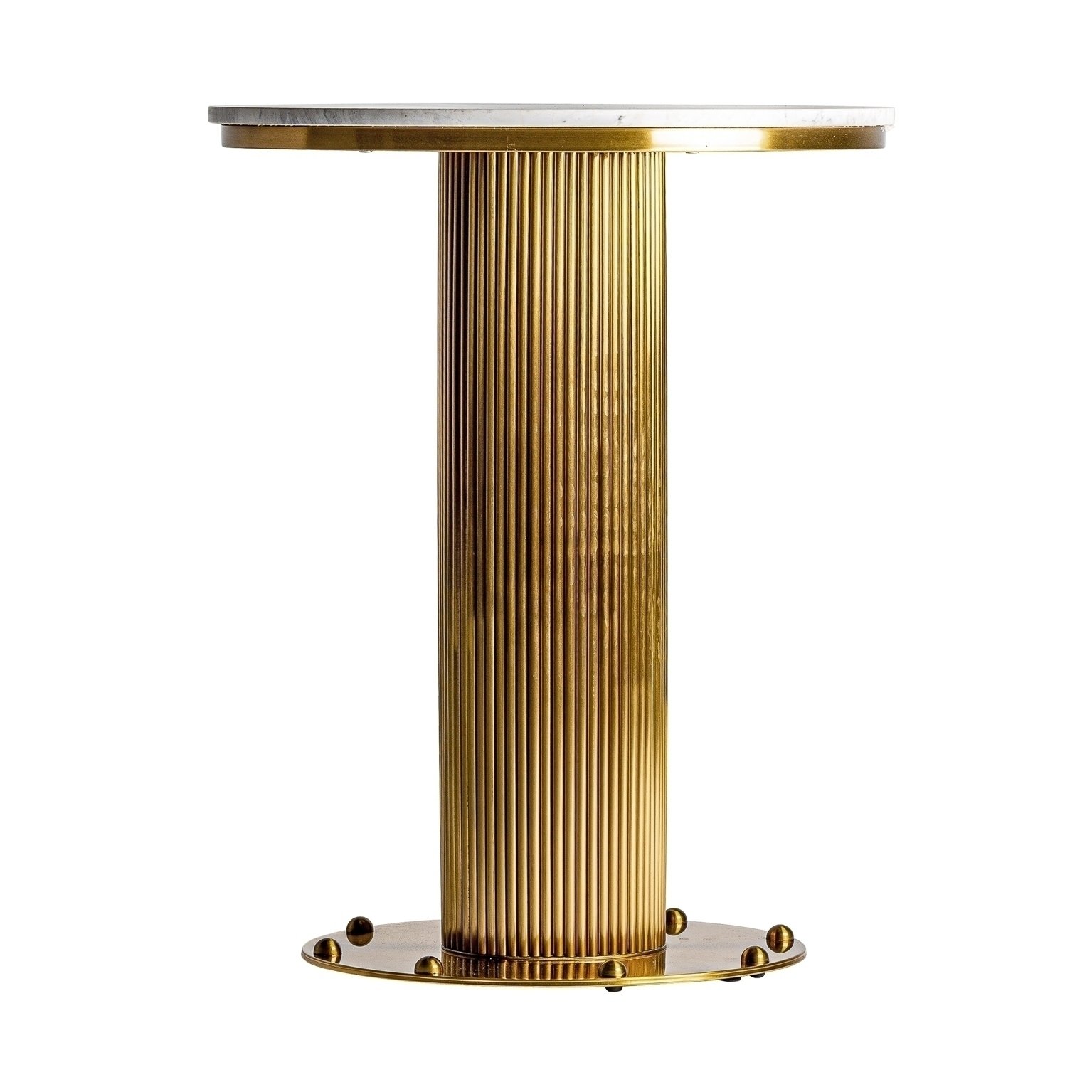 Круглый барный стол Dolny, бело-золотой, стиль арт-деко. Изготовлен из мрамора в сочетании со сталью. Съемное изделие.