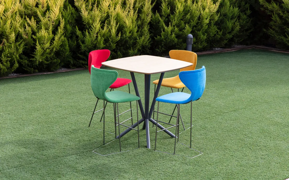 Представляем вам два новых дизайна столов на металлической основе: Dorian & Duncan. Dorian доступен в трех вариантах высоты: 75 см (стандарт для обеденных стульев), 95 и 105 см для использования с барными стульями. Duncan производится только одной высоты (105 см), он больше ориентирован на использование вне помещений или по контракту. Разница между Dorian и Duncan заключается в конструкции ног.