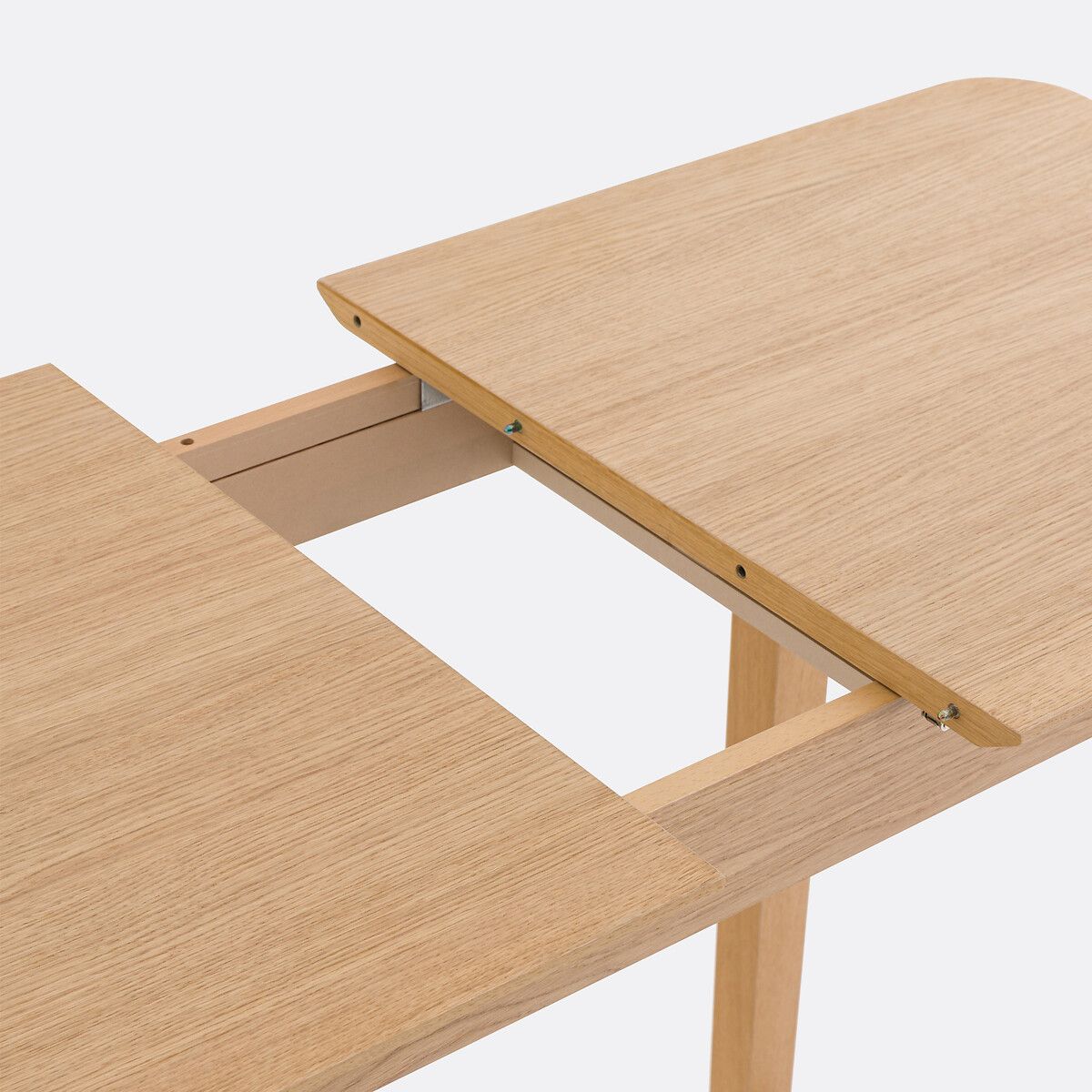 — Столешница и доска удлинения из ДСП (толщина 22 мм), шпон дуба и деревянная надставка из МДФ со шпоном дуба