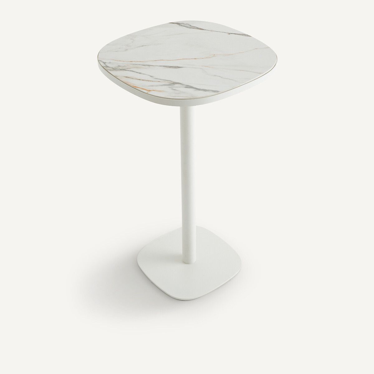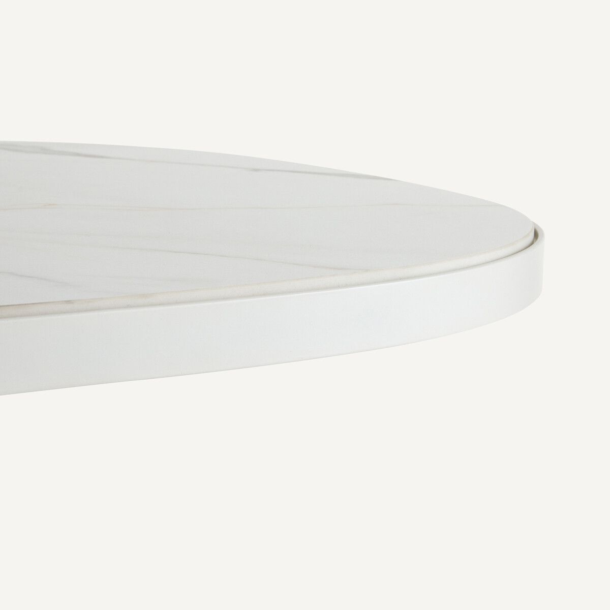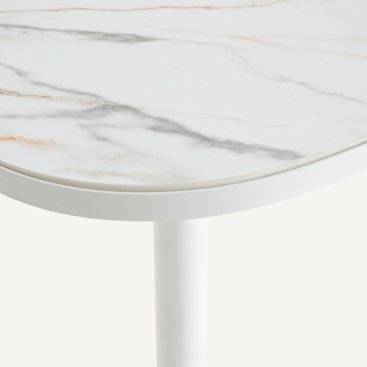 — Столешница из белой керамики с имитацией мрамора толщиной 1 см. Каждый стол уникален: цвета и эффект мрамора могут отличаться.