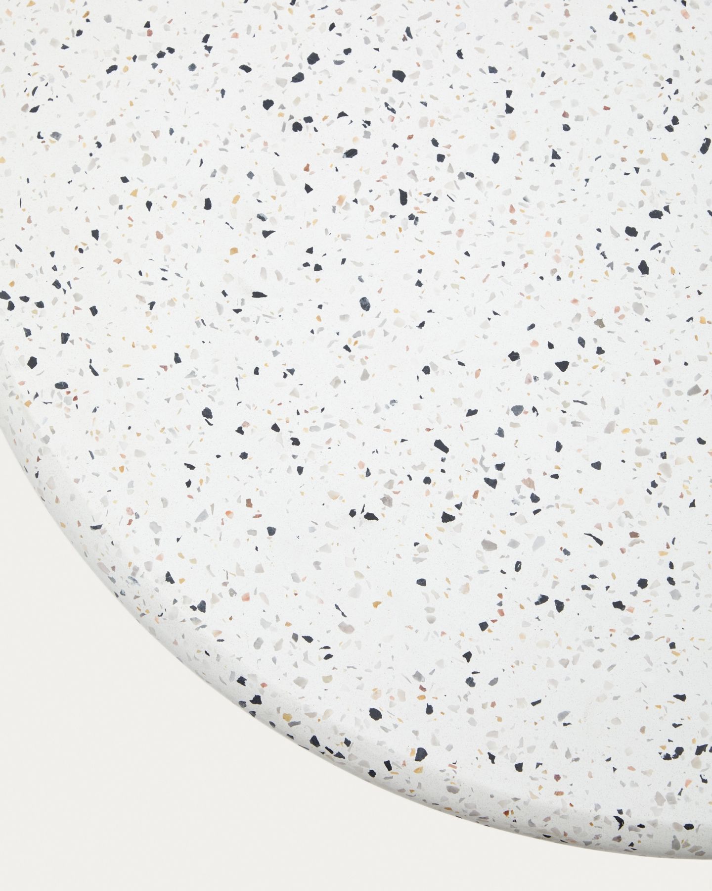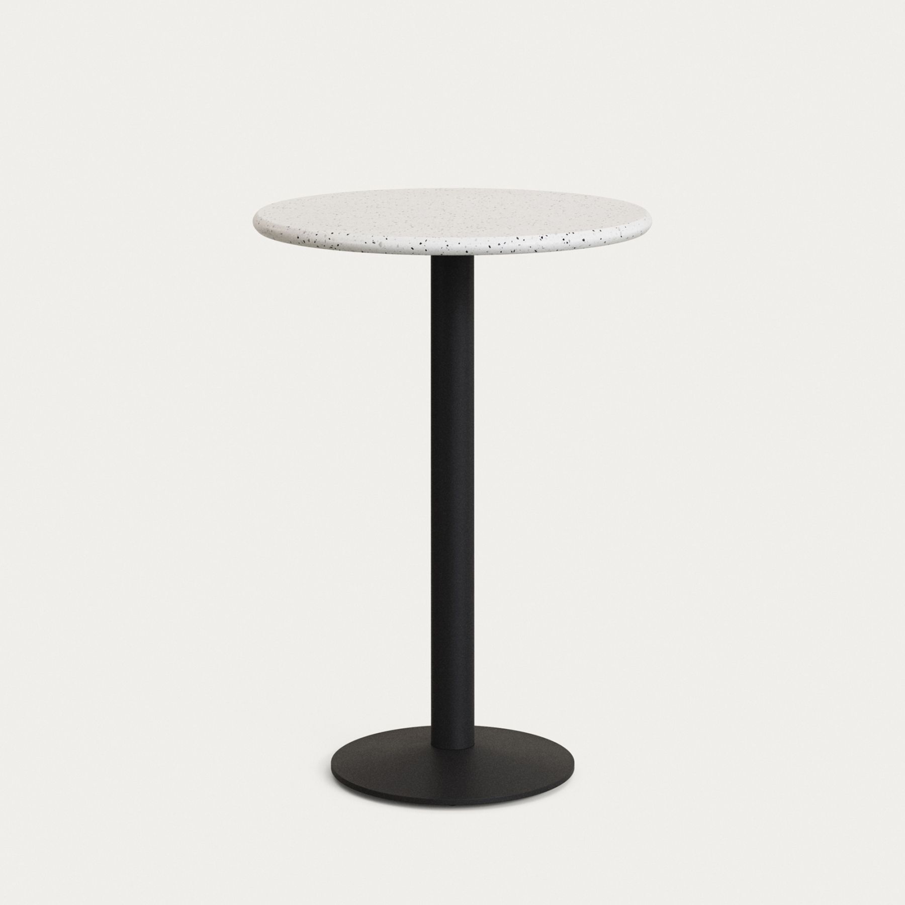 Круглый высокий барный стол Saura из черного металла со столешницей из белой терраццо, 96 x Ø70 см.