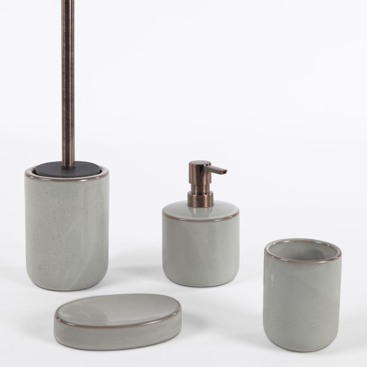 Размеры: дозатор – 9,6 х 14,7 х 9,6 см; щетка – 10,3 х 14,3 х 10,3 см; мыльница – 13,5 х 2,6 х 8,7 см; стакан для зубных щеток – 7,6 х 9,8 х 7,6 см.