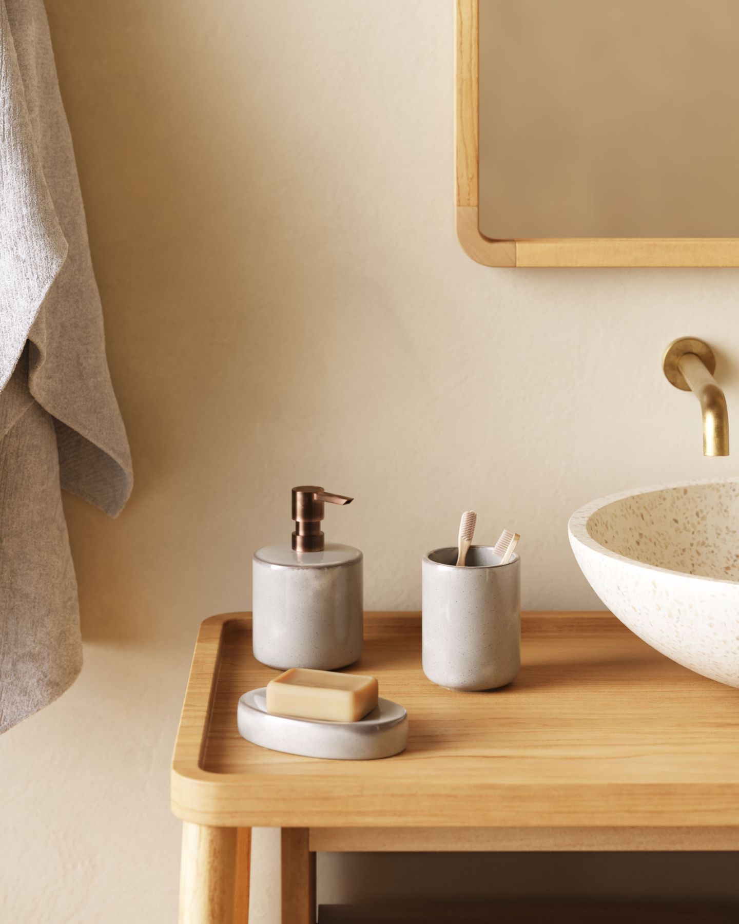 В коллекции Chavela представлено четыре предмета – щетка, дозатор, мыльница и стакан для зубных щеток.
