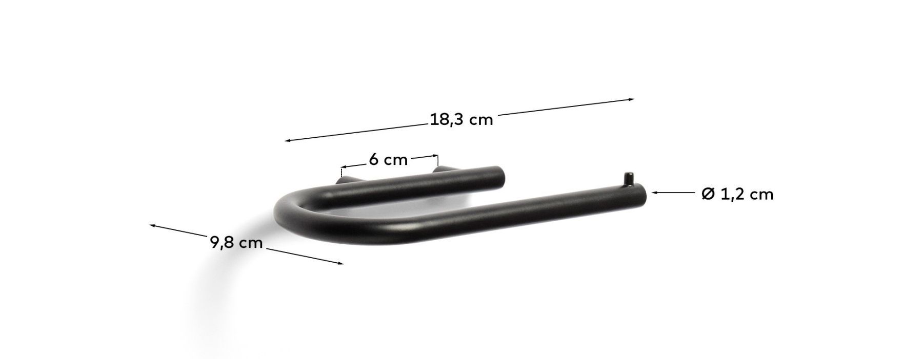 Держатель для туалетной бумаги из чёрного металла. Совместим со шпилькой с резьбой M12. Дизайн: Nahtrang для Kave Home.