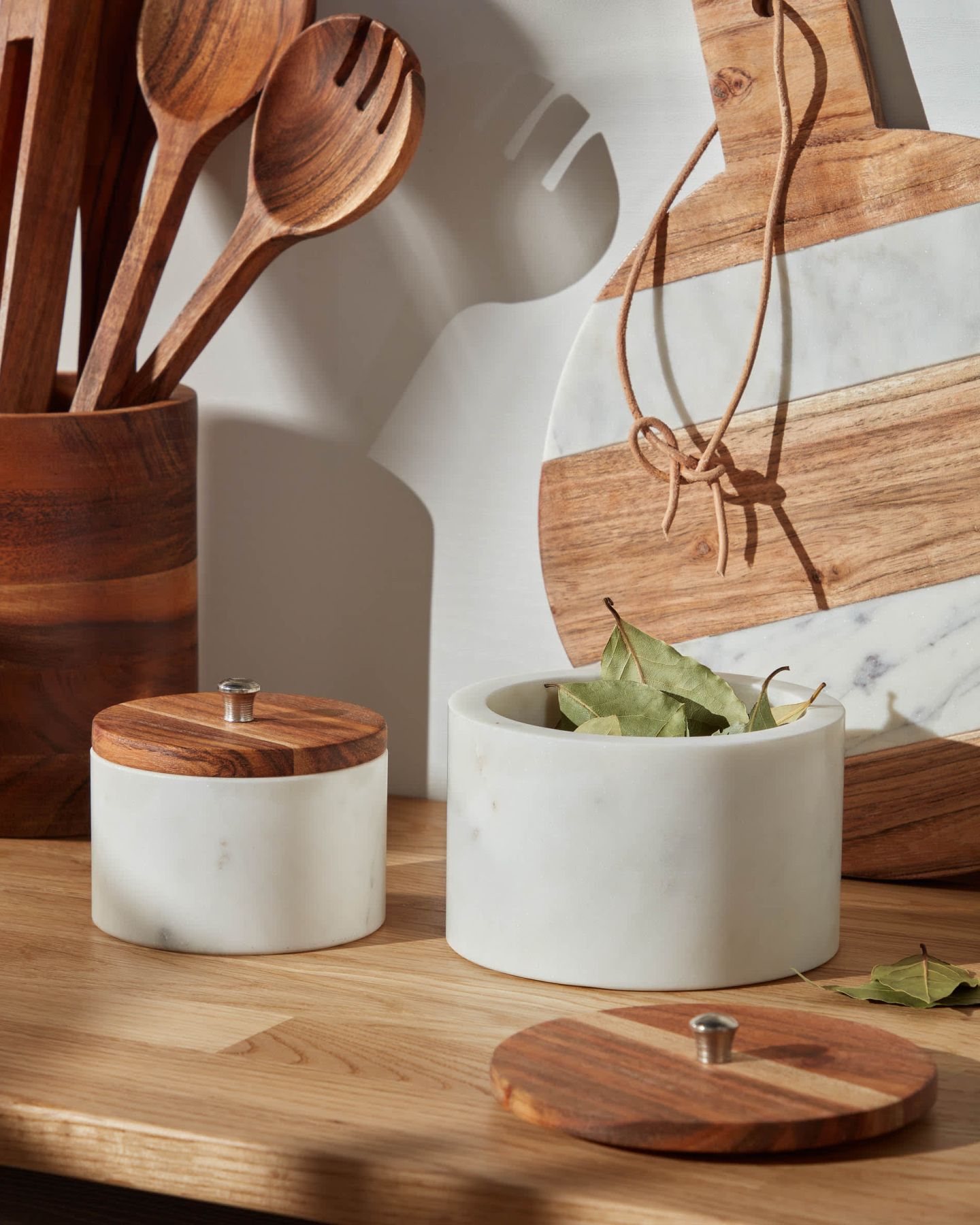 Для вашей кухни или ванной вам понравится держать эту банку в руках. Мрамор и твердая древесина акации — идеальное сочетание для ухода за вашими комнатами и их обустройства так, как они этого заслуживают.