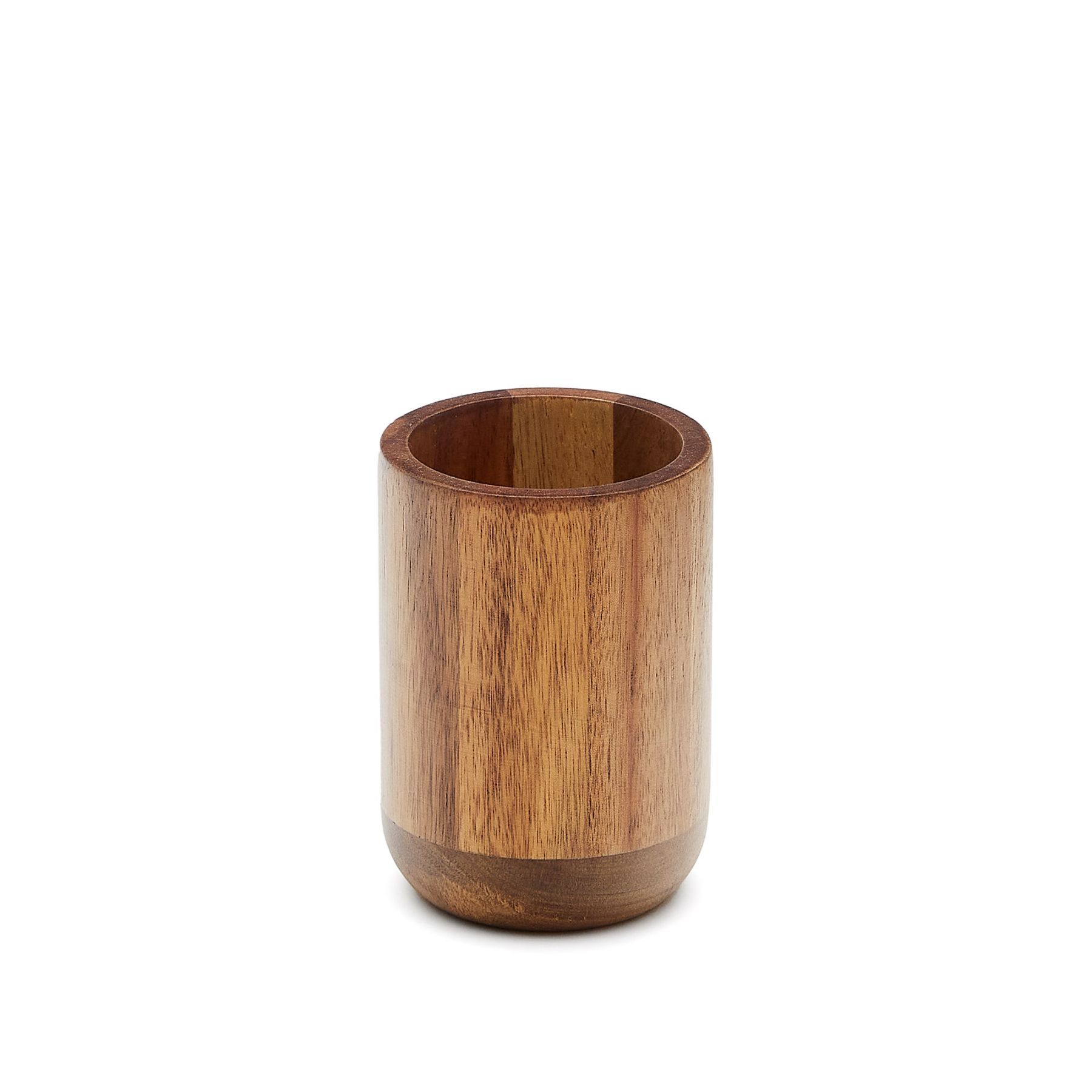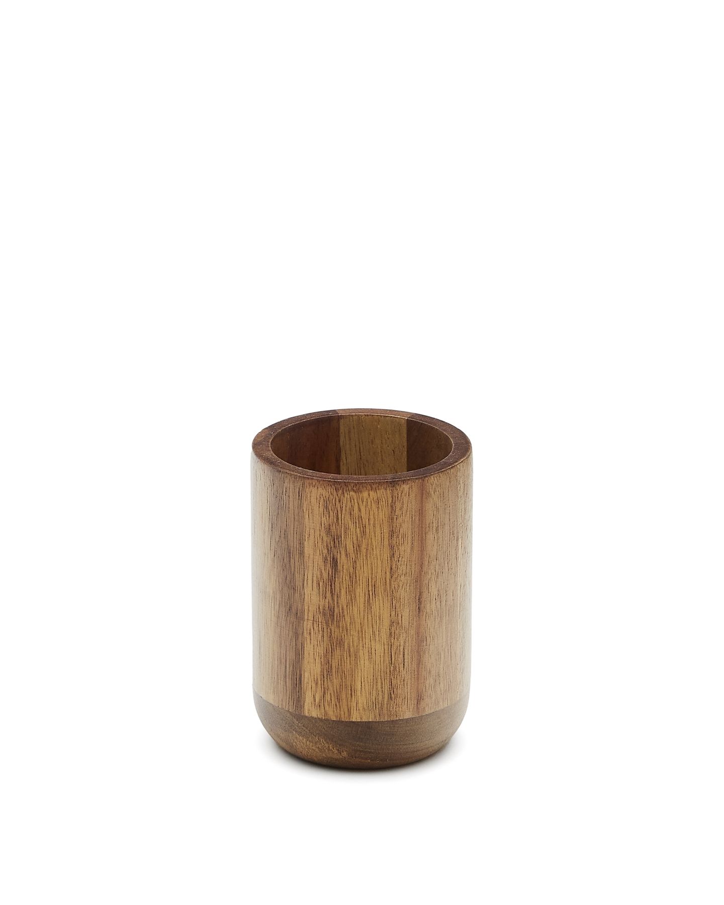 В коллекцию Senda входит три предмета. Это дозатора для мыла, стакан для зубных щеток и поднос. Материал изготовления – натуральный массив акации, который защищен от влаги специальным прозрачным покрытием. Поэтому изделия не будут портиться от влаги, терять свою природную прочность и долговечность.