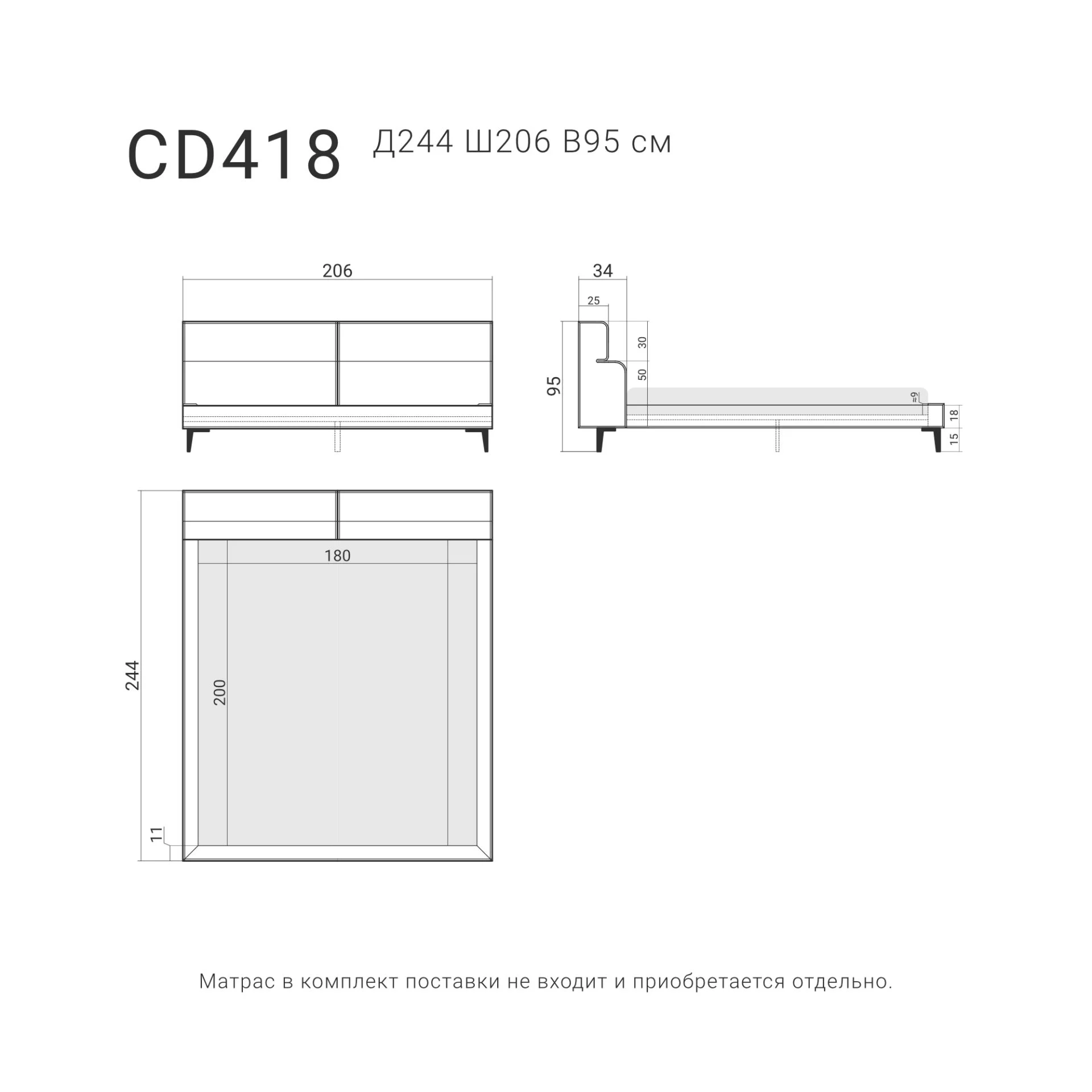 Поддерживающее основание кровати на металлическом каркасе. Кровать поставляется в разобранном виде. Матрас не входит в стандартную комплектацию и приобретается отдельно.