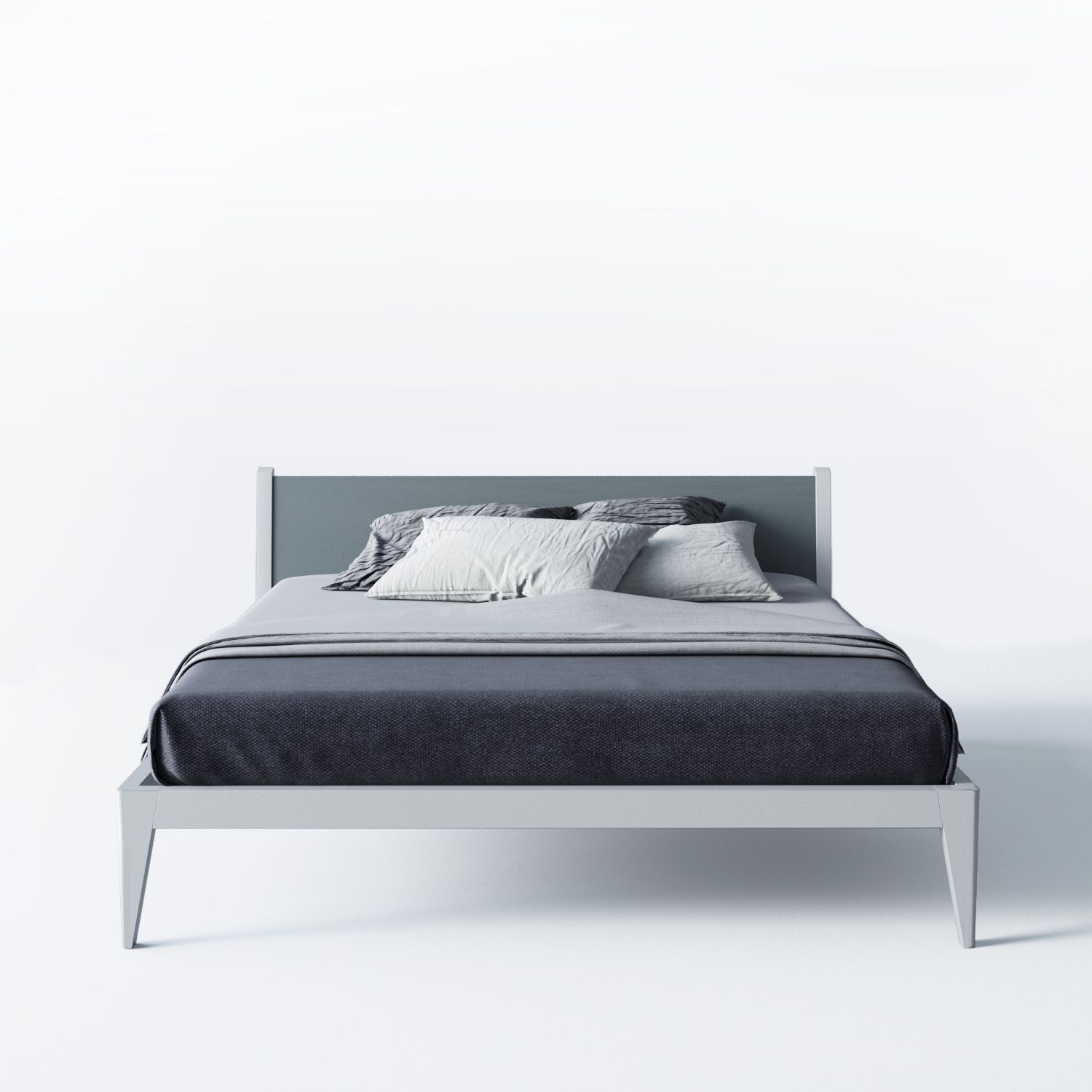 Размеры спального места кровати: Ш.140 см Г.200 см Рекомендуемая высота матраса 16-20 см Каркас-эмаль светло-серая ral 7047, изголовье-эмаль серая ral 7012