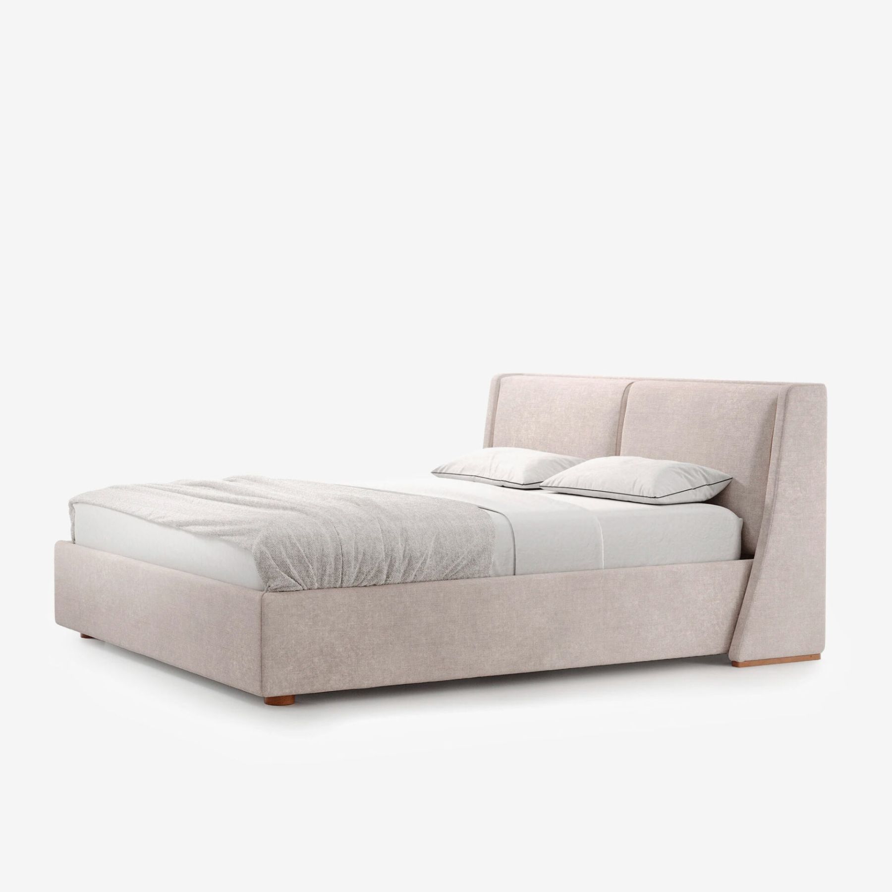 Плавные линии каркаса изголовья, изящные переходы между деталями и отсутствие острых углов подчеркивают легкость и утонченность этой кровати. На царге отсутствуют видимые швы и стыки.