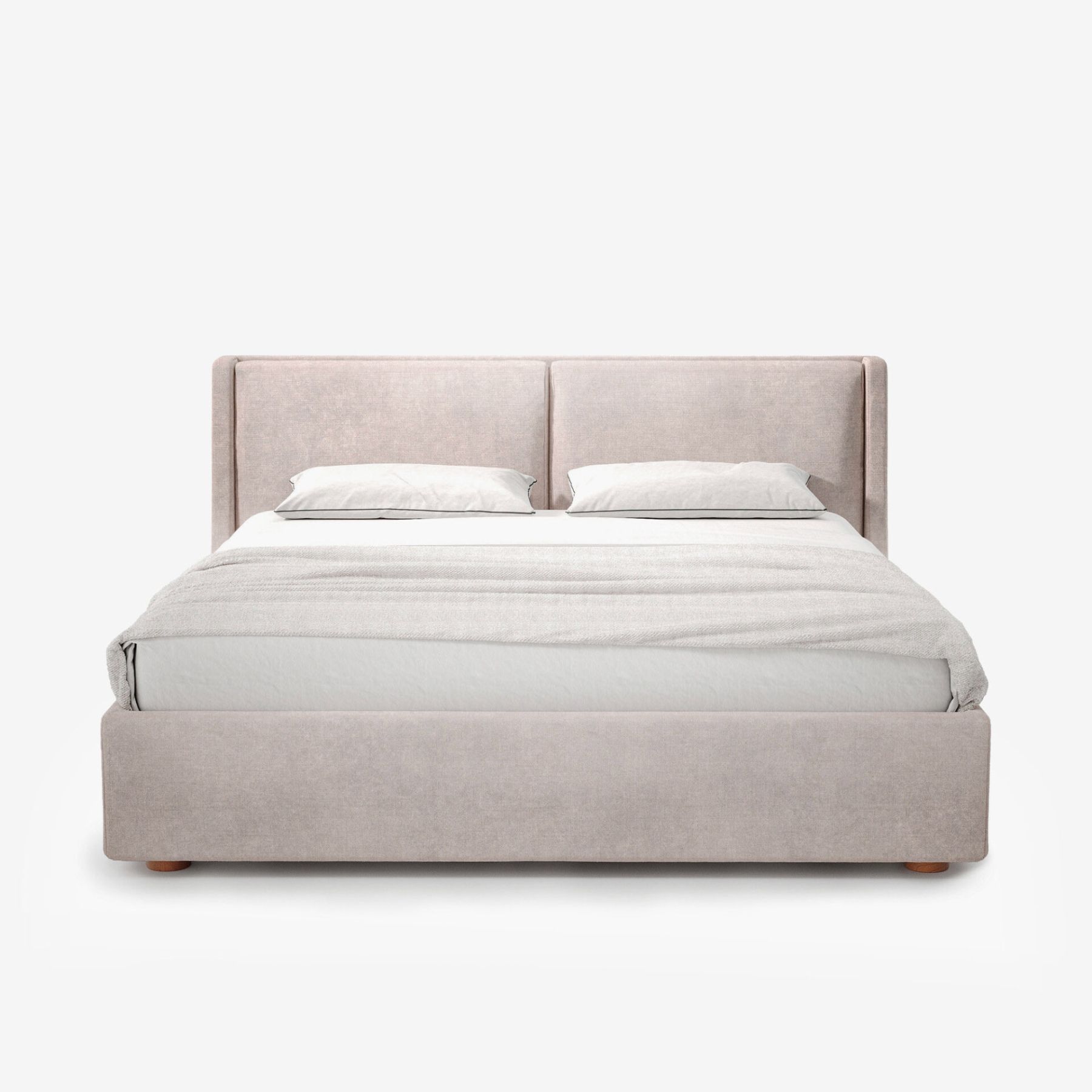 Высокое изголовье украшено двумя мягкими подушками, на которые удобно опереться, чтобы почитать перед сном или посмотреть любимый фильм.