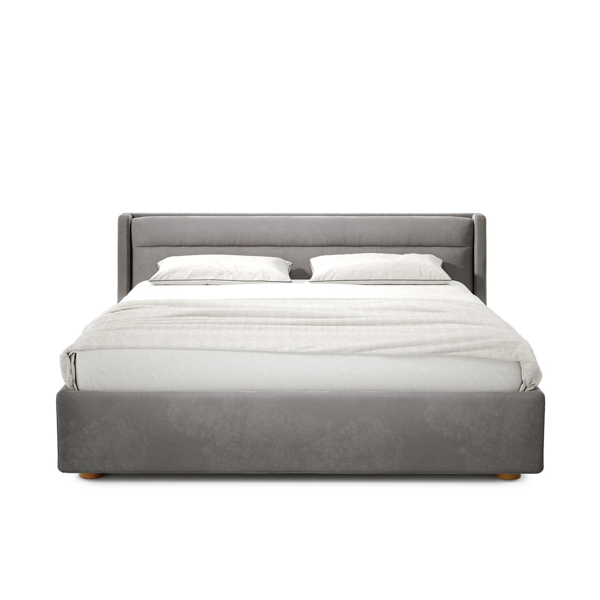 Плавные линии каркаса изголовья, изящные переходы между деталями и отсутствие острых углов подчеркивают легкость и утонченность этой кровати. На царге отсутствуют видимые швы и стыки.