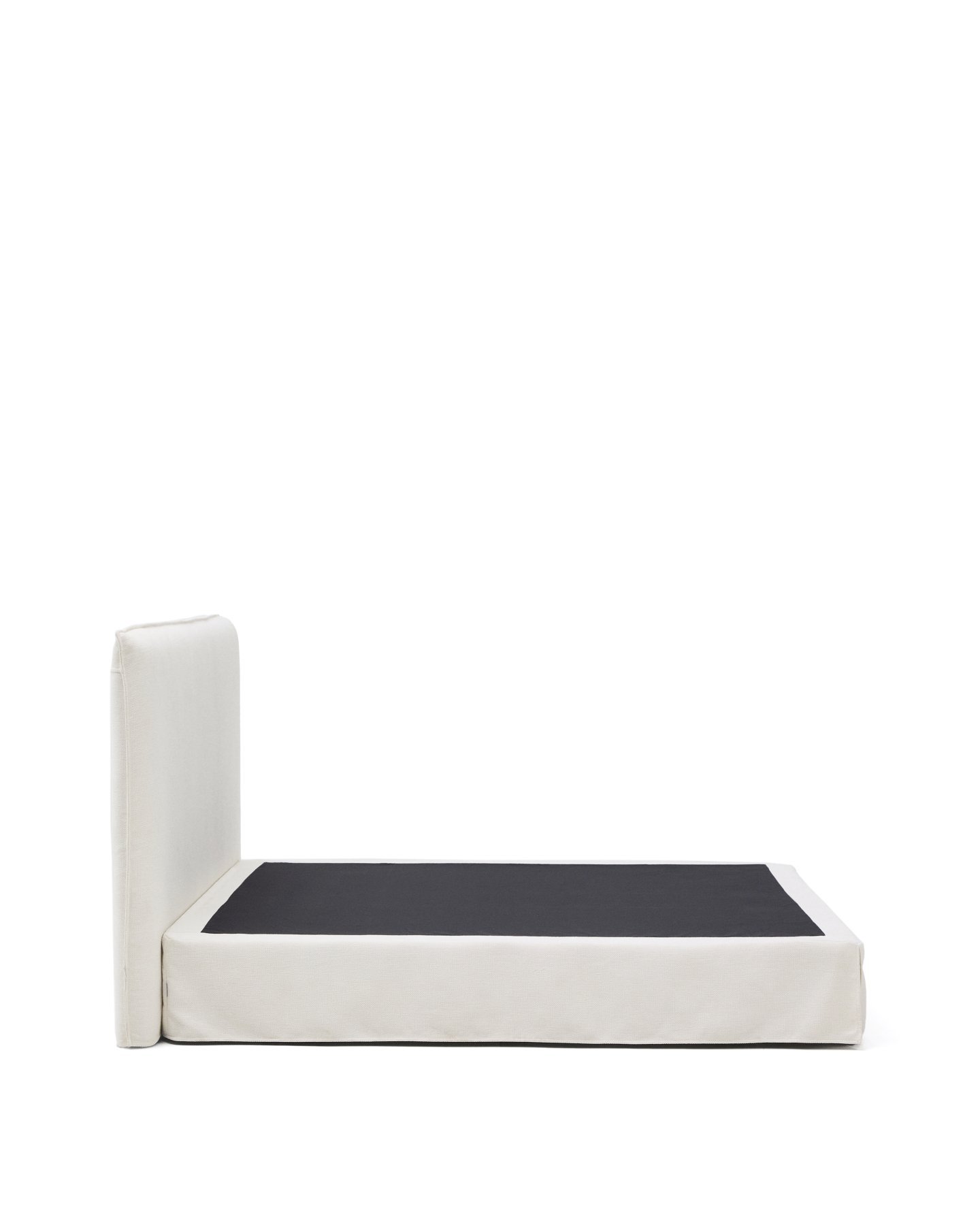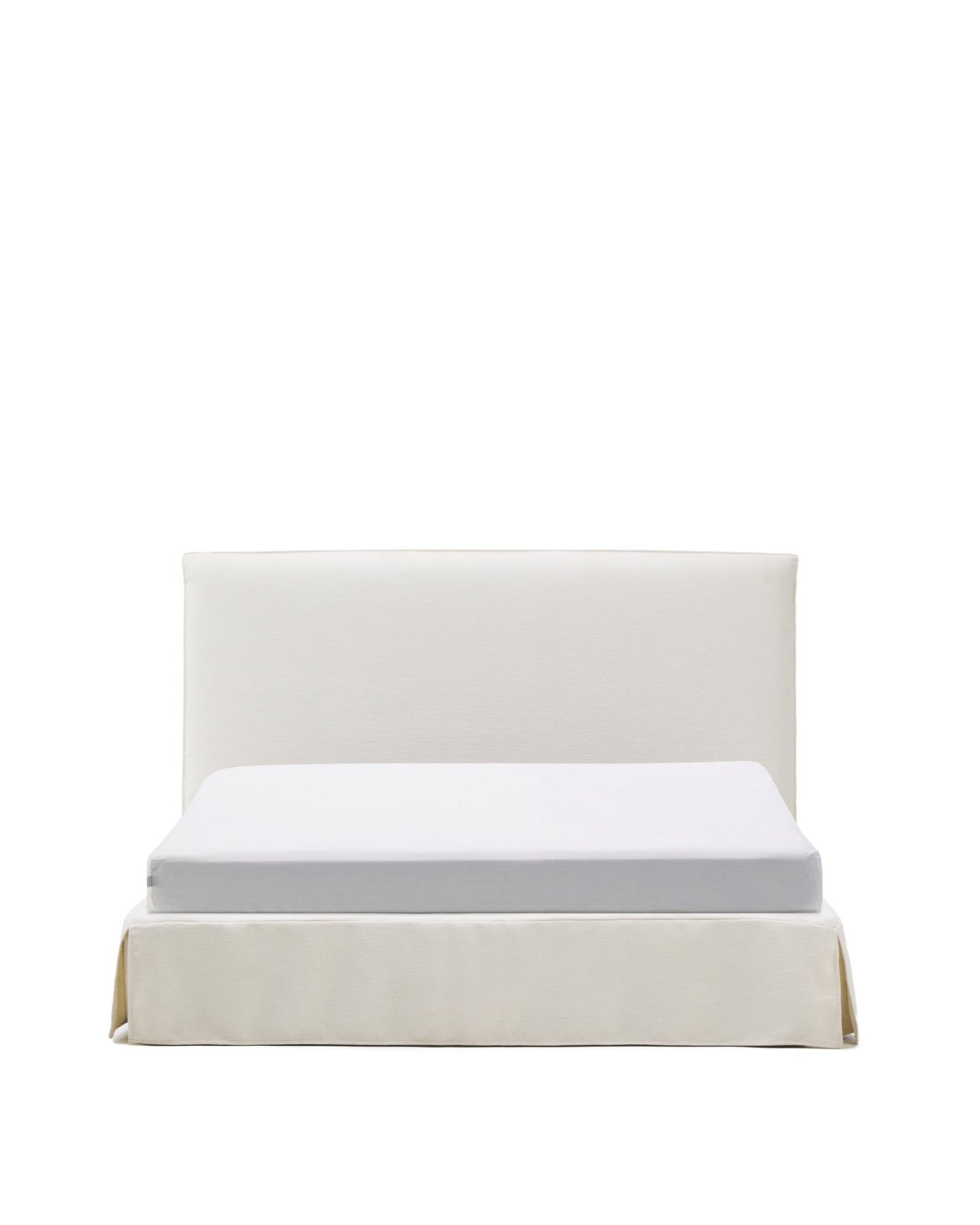 Кровать со съемным чехлом сочетает в себе комфорт, функциональность и дизайн, создавая элегантное дополнение к спальне. Чехол из высококачественного плотного шенилла имеет мягкую бархатистую текстуру и обработан против пятен, что облегчает уход и продлевает срок службы. Внутренняя часть изготовлена из сертифицированной древесины FSC Mix Credit, полученной из ответственно управляемых источников. Основание кровати обито мягкой тканью, поэтому основание не требуется, обеспечивая жесткость и устойчивость матраса. Ткань сертифицирована по стандарту OEKO-TEX® STANDARD 100, что гарантирует безопасность и экологичность производства. Изголовье кровати, произведенное локально в Европе, способствует сокращению выбросов CO₂ и отражает приверженность качеству, комфорту и устойчивому развитию.