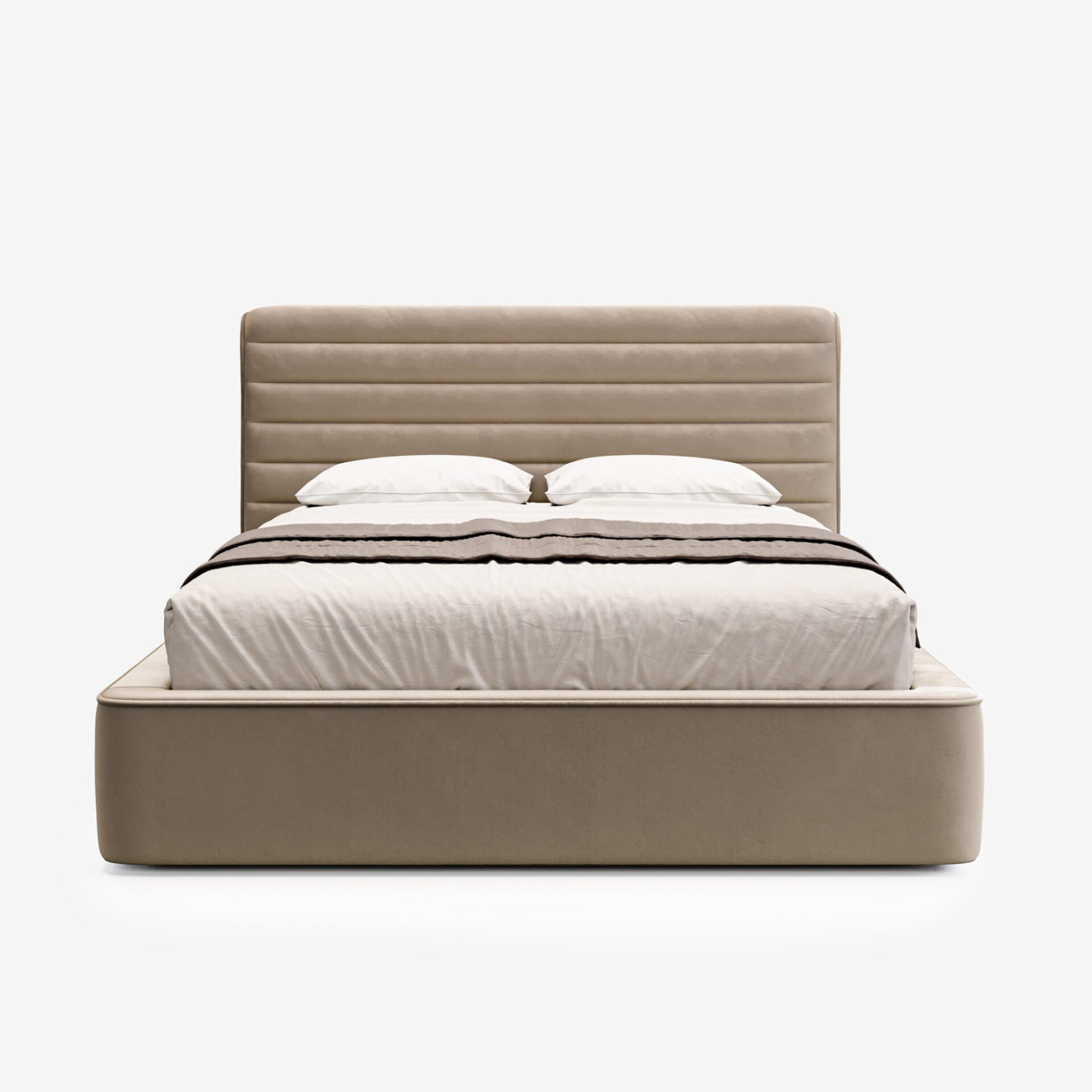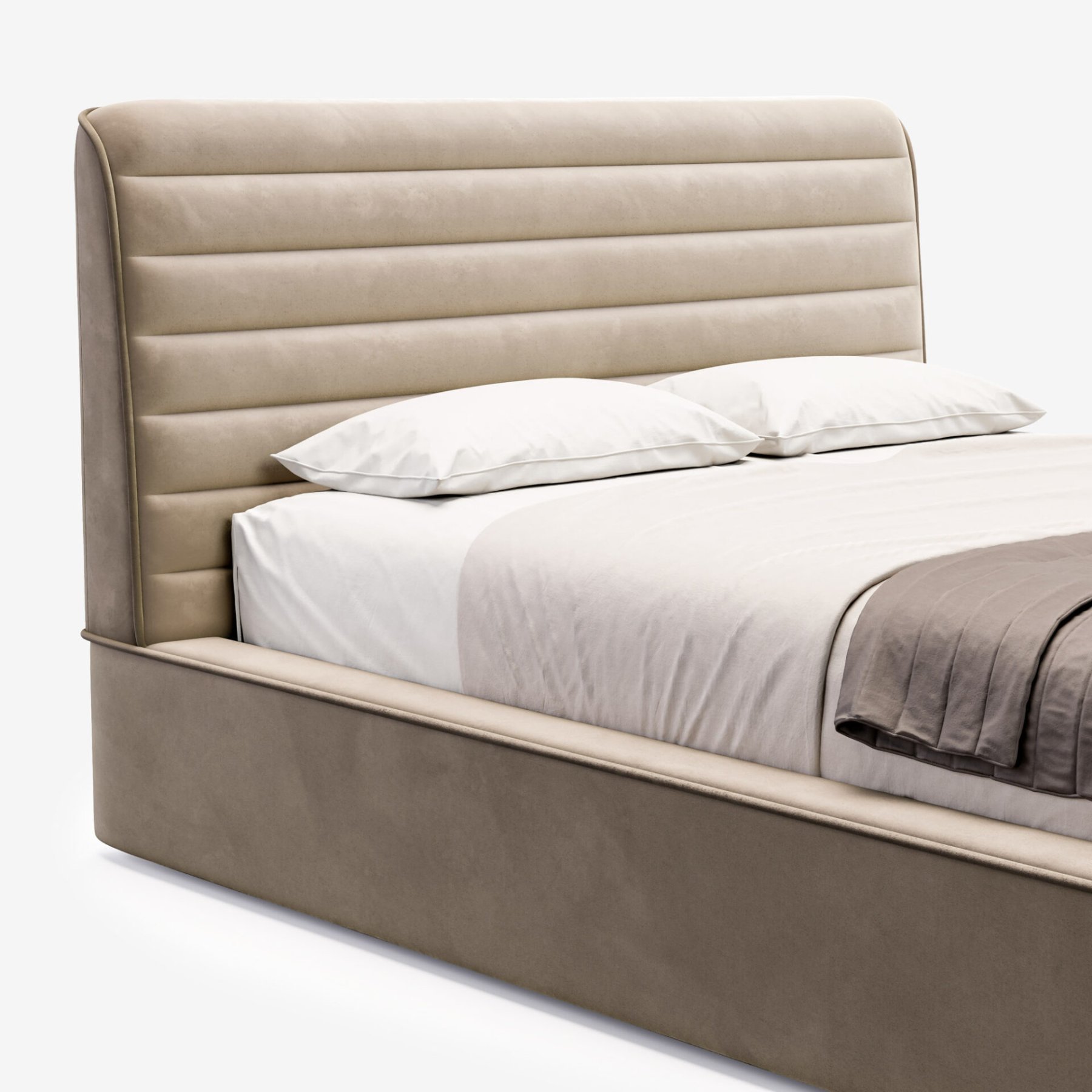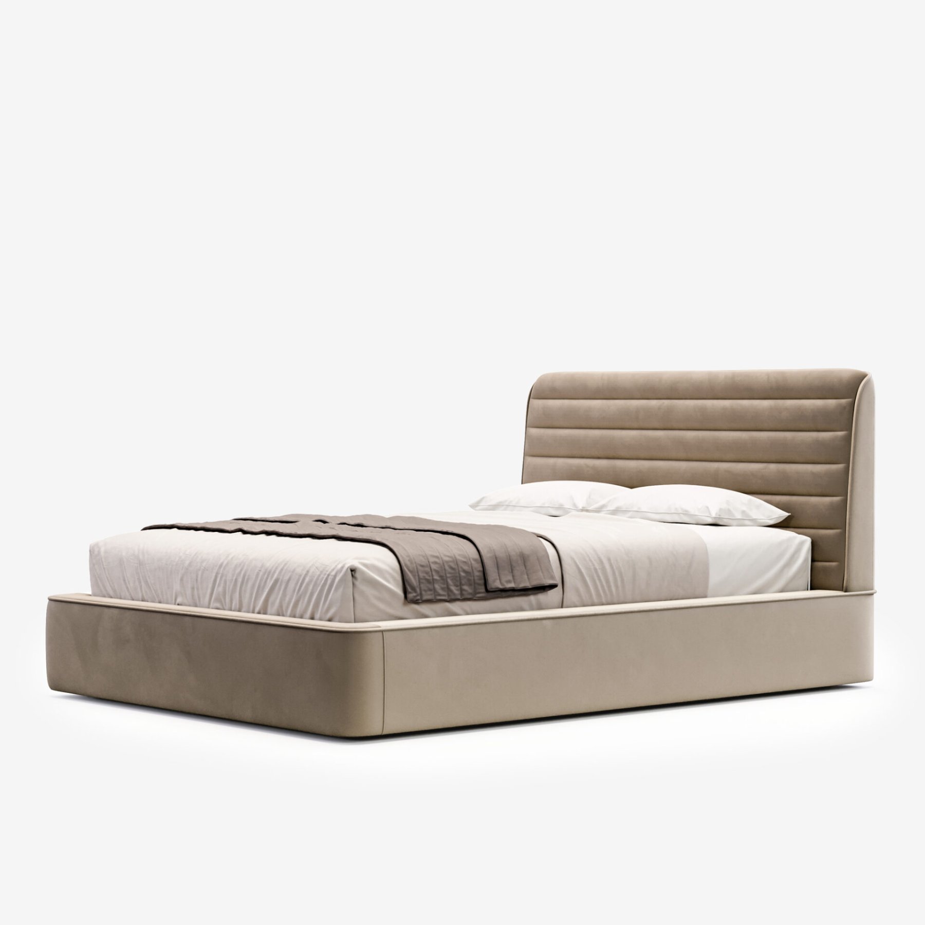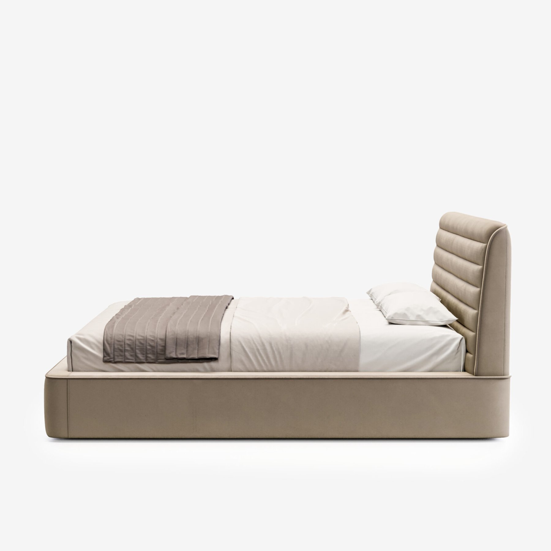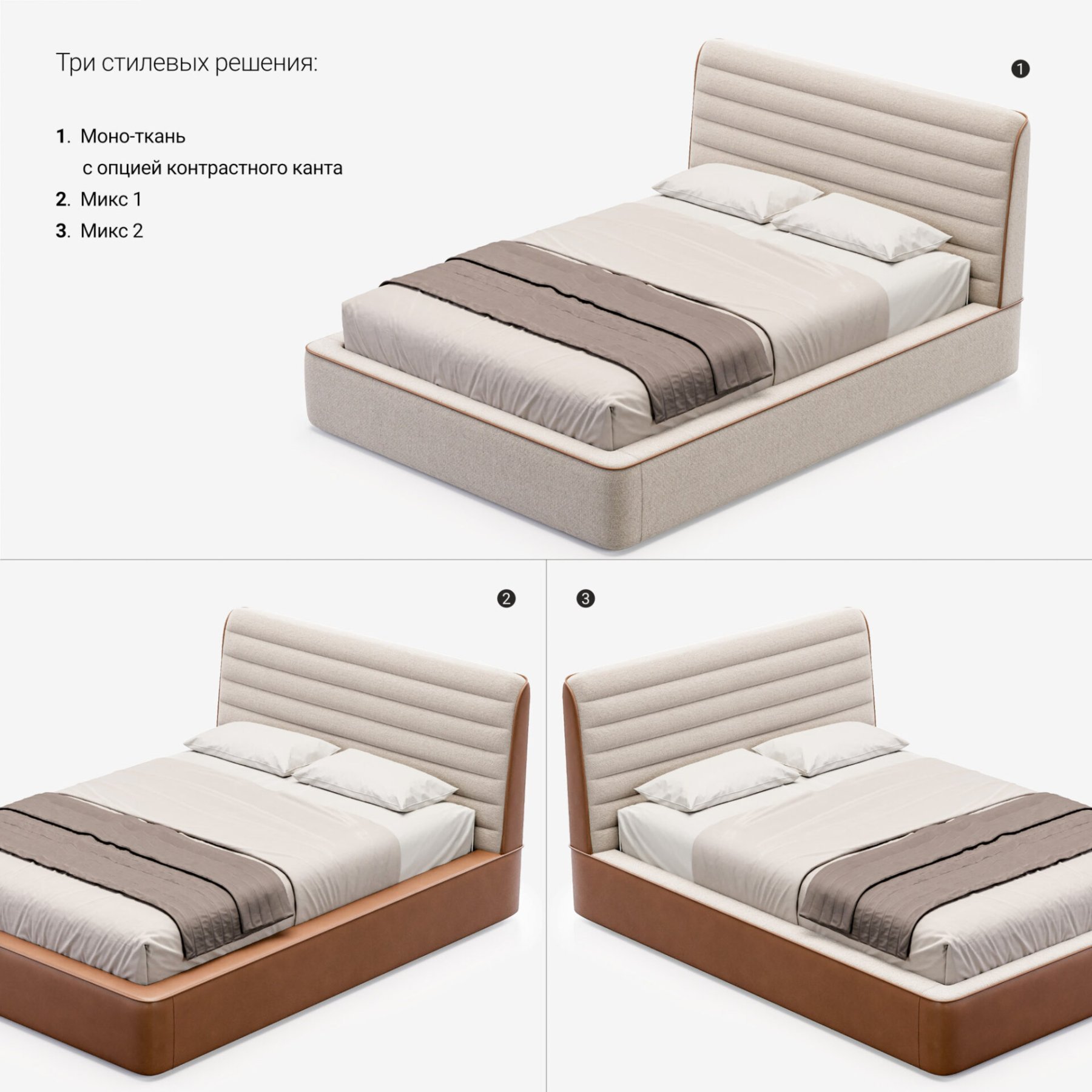 Изголовье с горизонтальной строчкой и мягкий кант подчеркивают сдержанную элегантность модели.