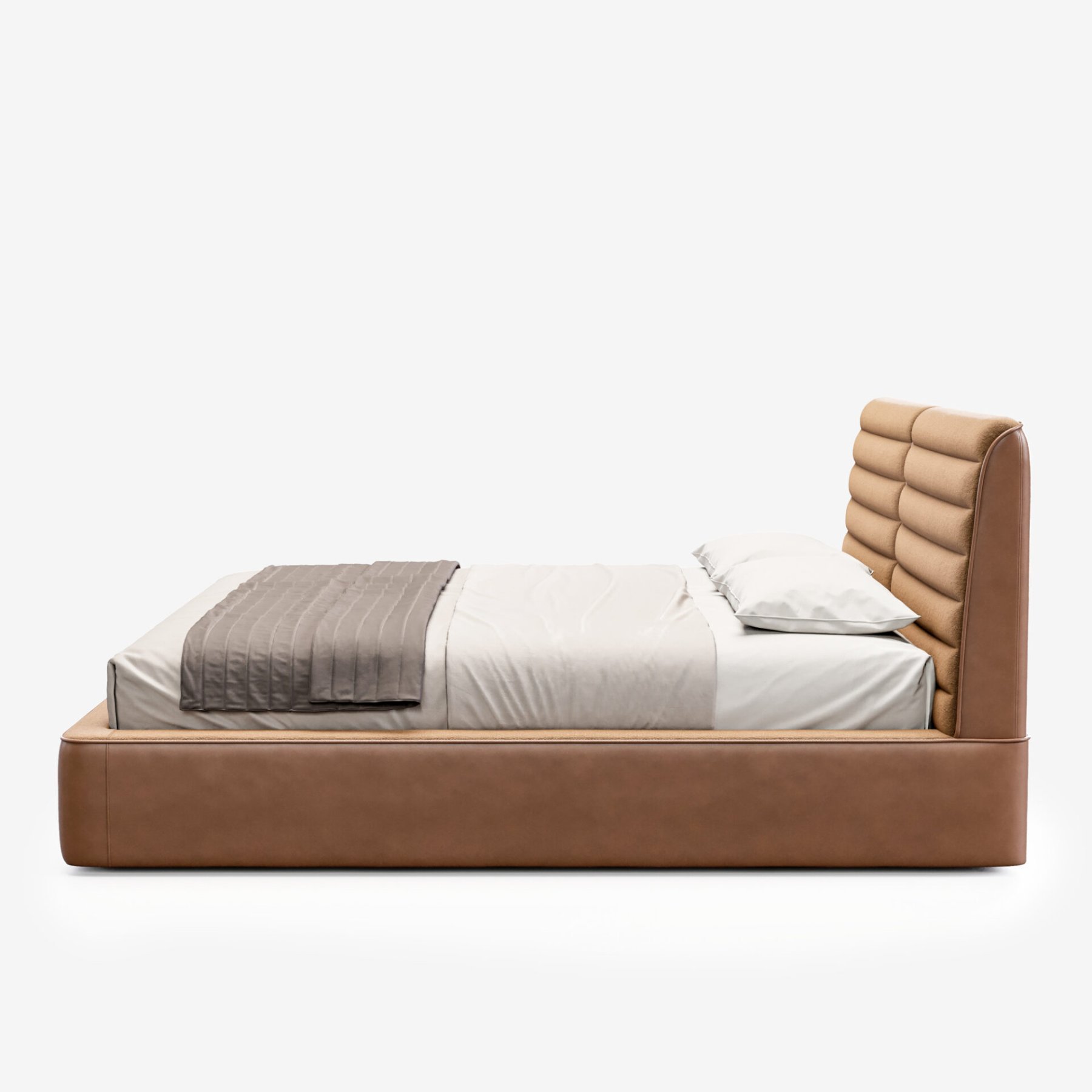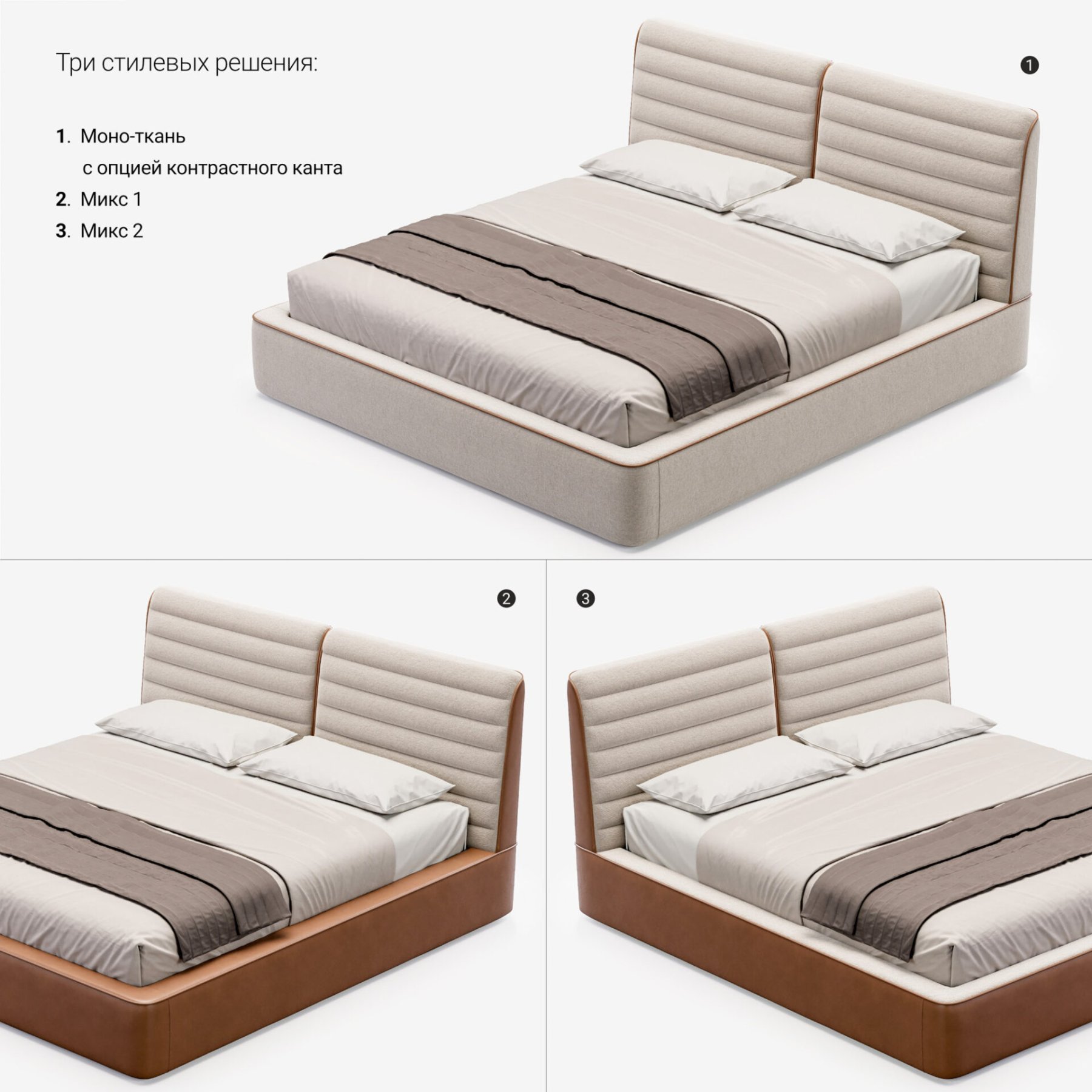 Изголовье с горизонтальной строчкой и мягкий кант подчеркивают сдержанную элегантность модели.