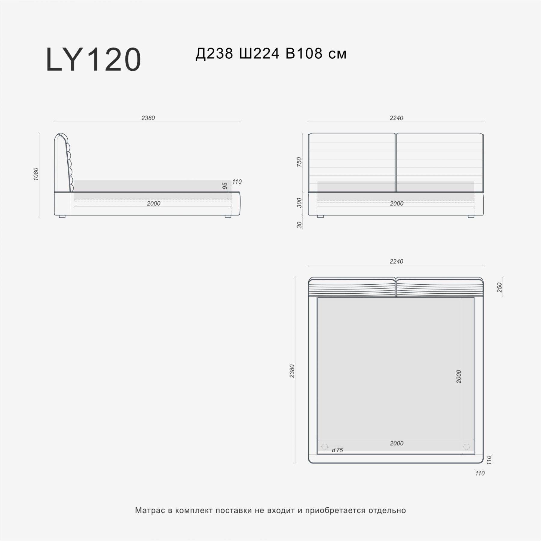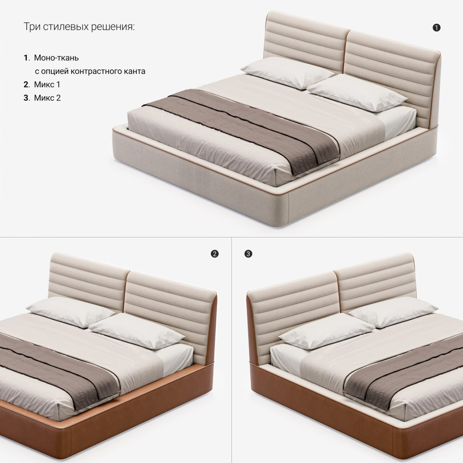 Изголовье с горизонтальной строчкой и мягкий кант подчеркивают сдержанную элегантность модели.
