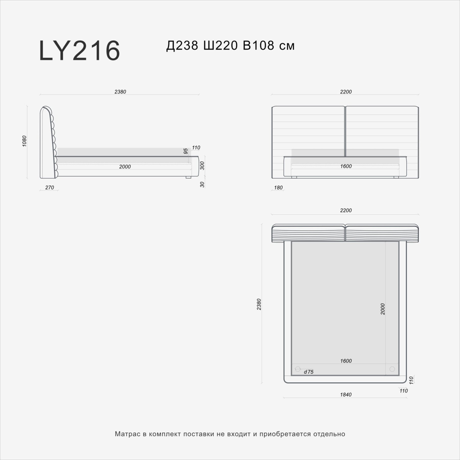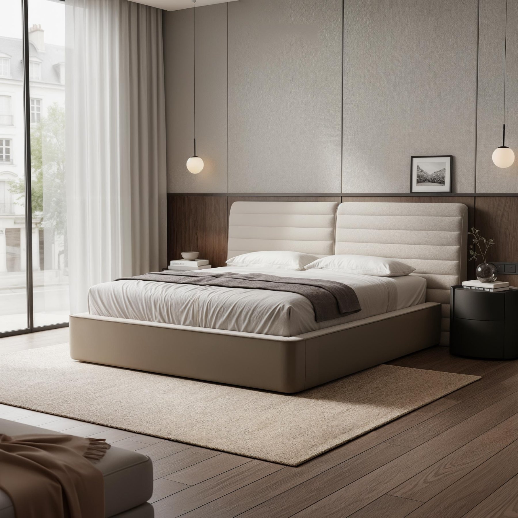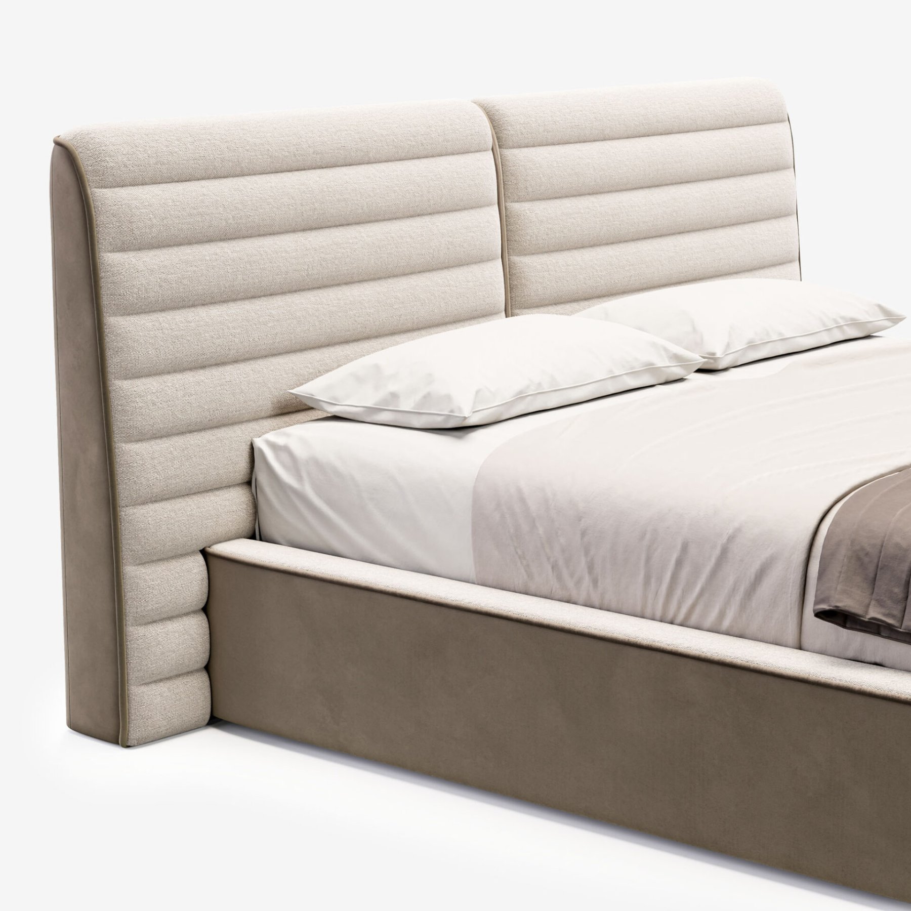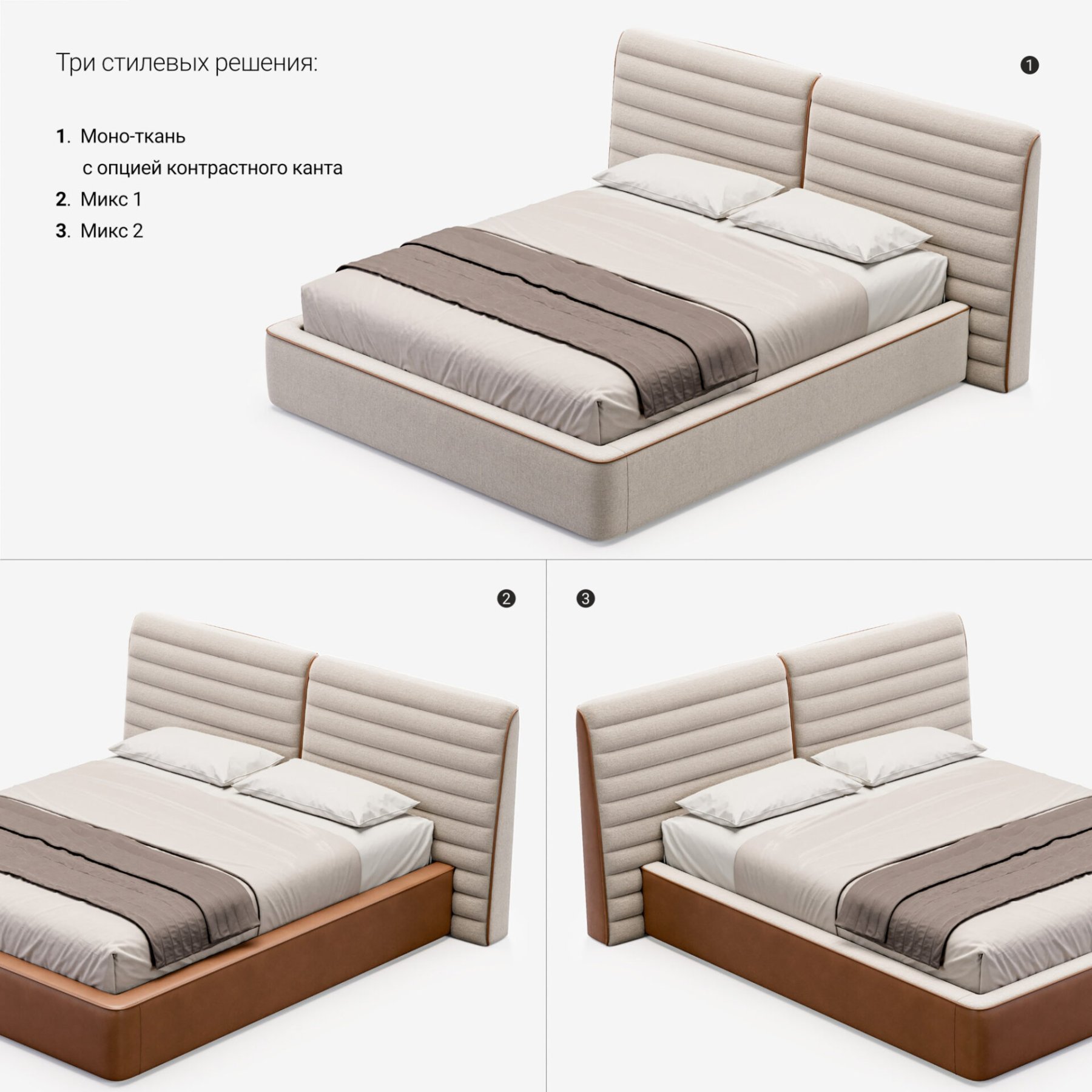 Изголовье с горизонтальной строчкой и мягкий кант подчеркивают сдержанную элегантность модели.