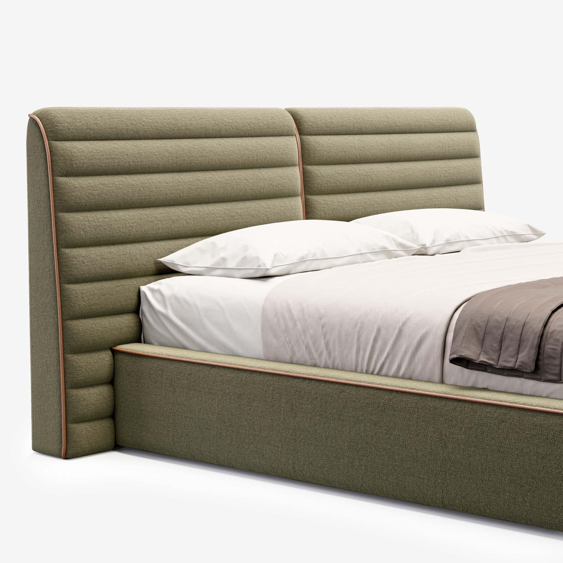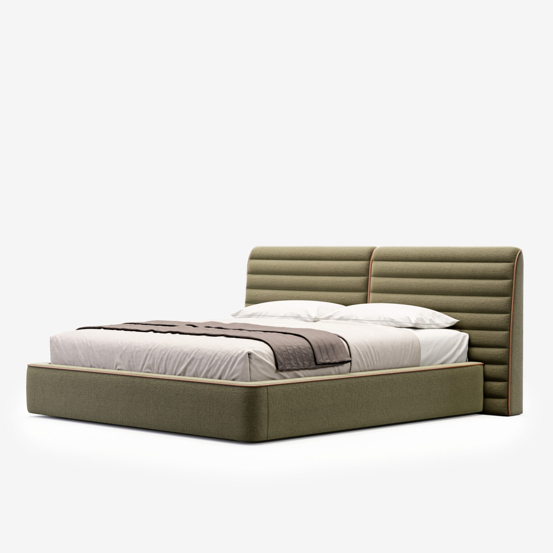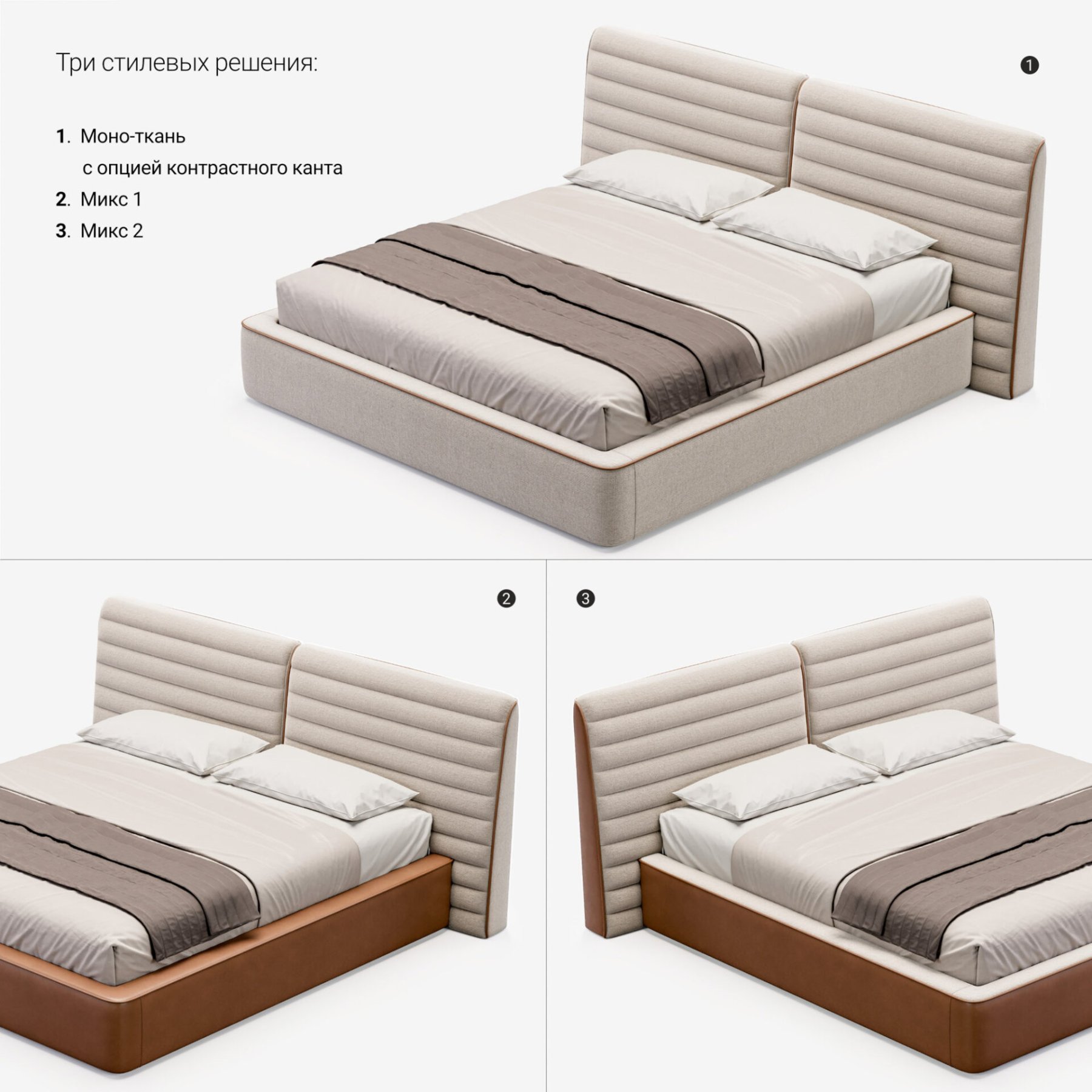 Изголовье с горизонтальной строчкой и мягкий кант подчеркивают сдержанную элегантность модели.