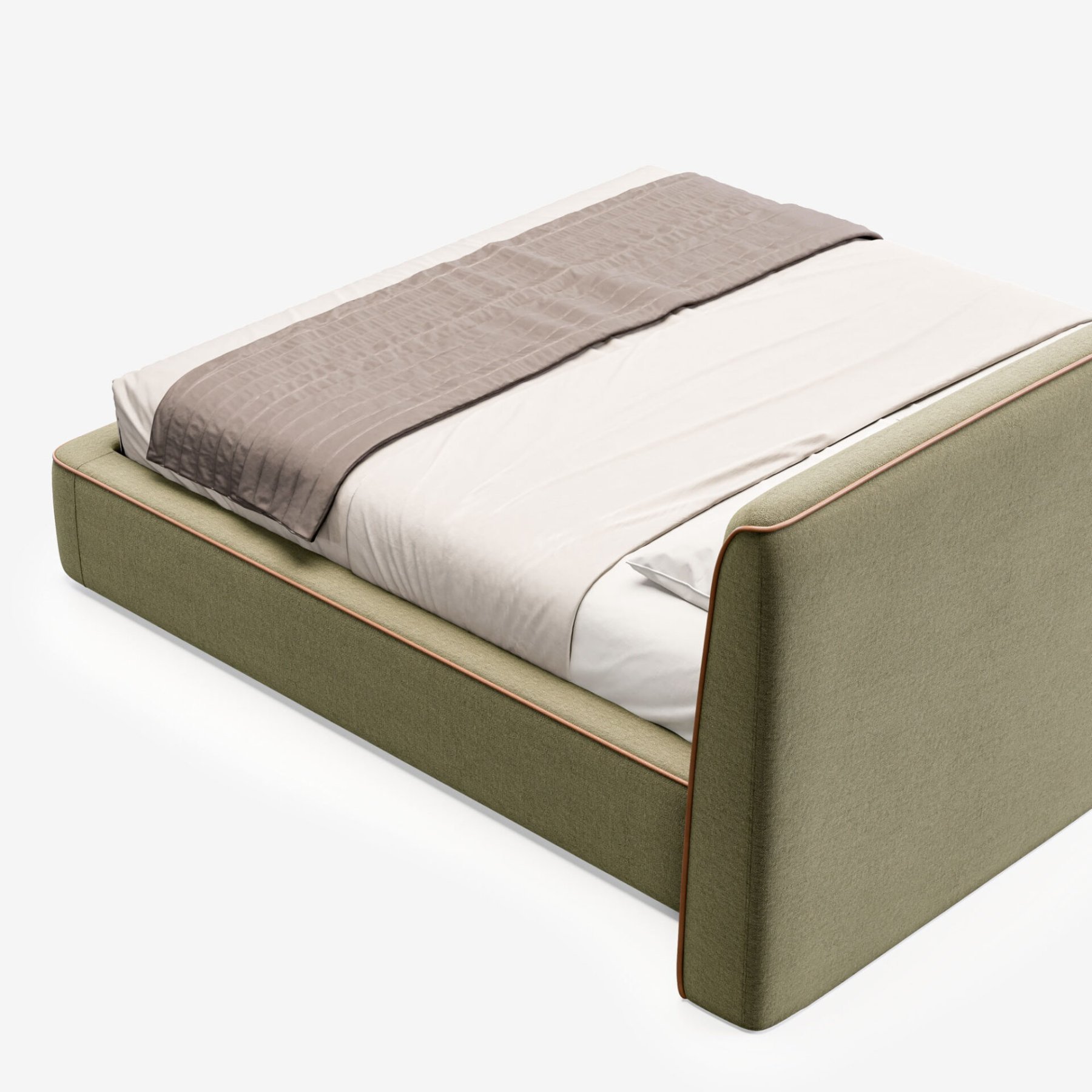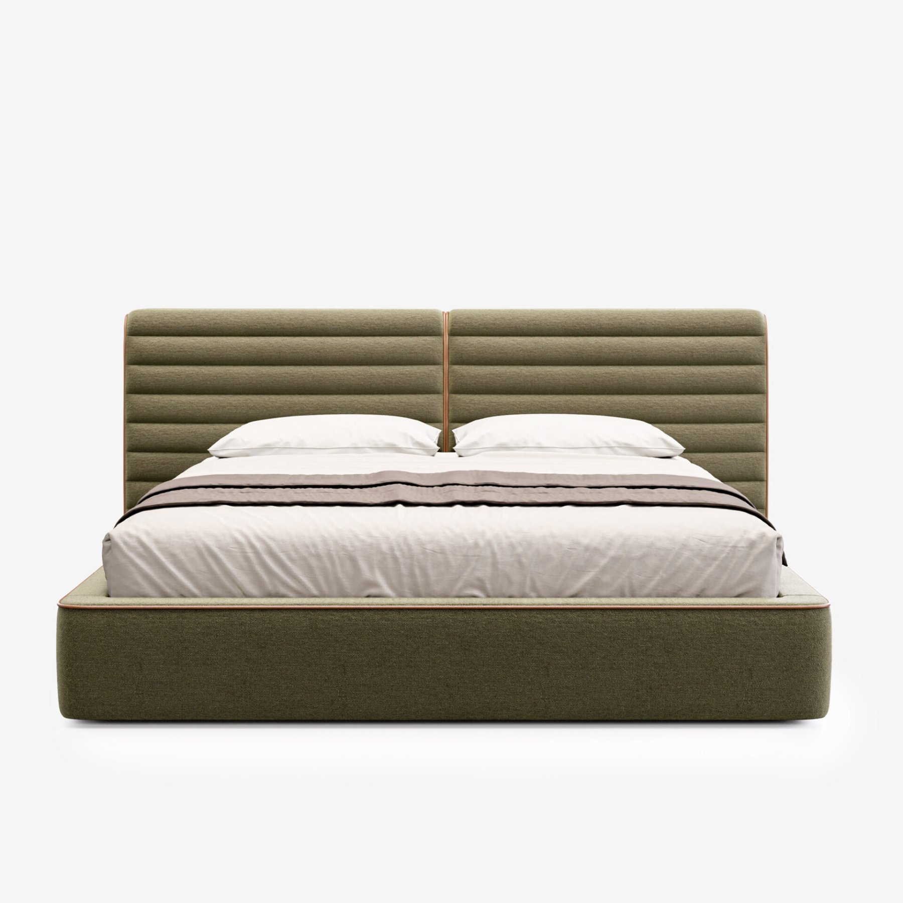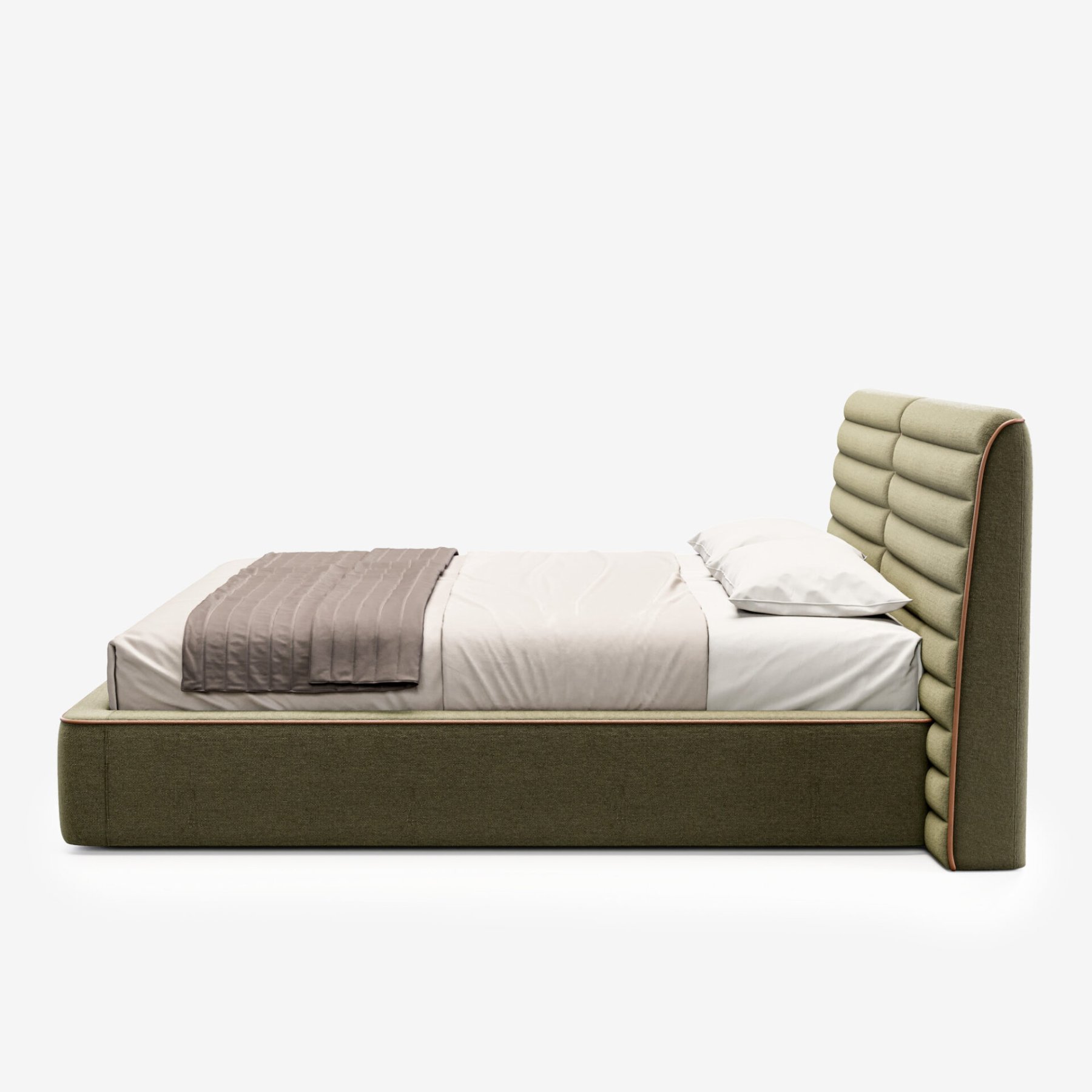Изголовье с горизонтальной строчкой и мягкий кант подчеркивают сдержанную элегантность модели.