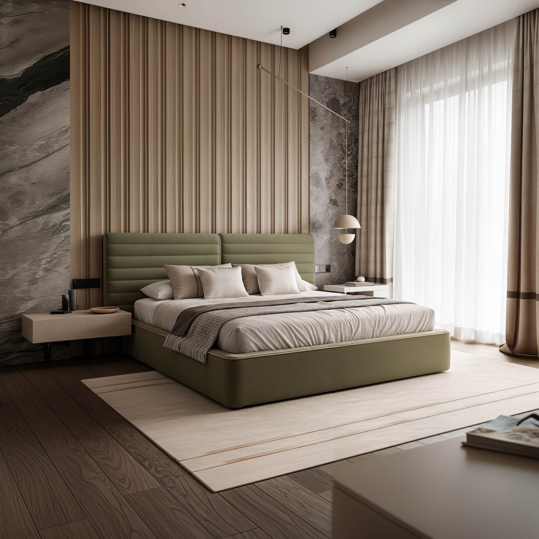 создавая в спальне атмосферу умиротворения и эстетического порядка.