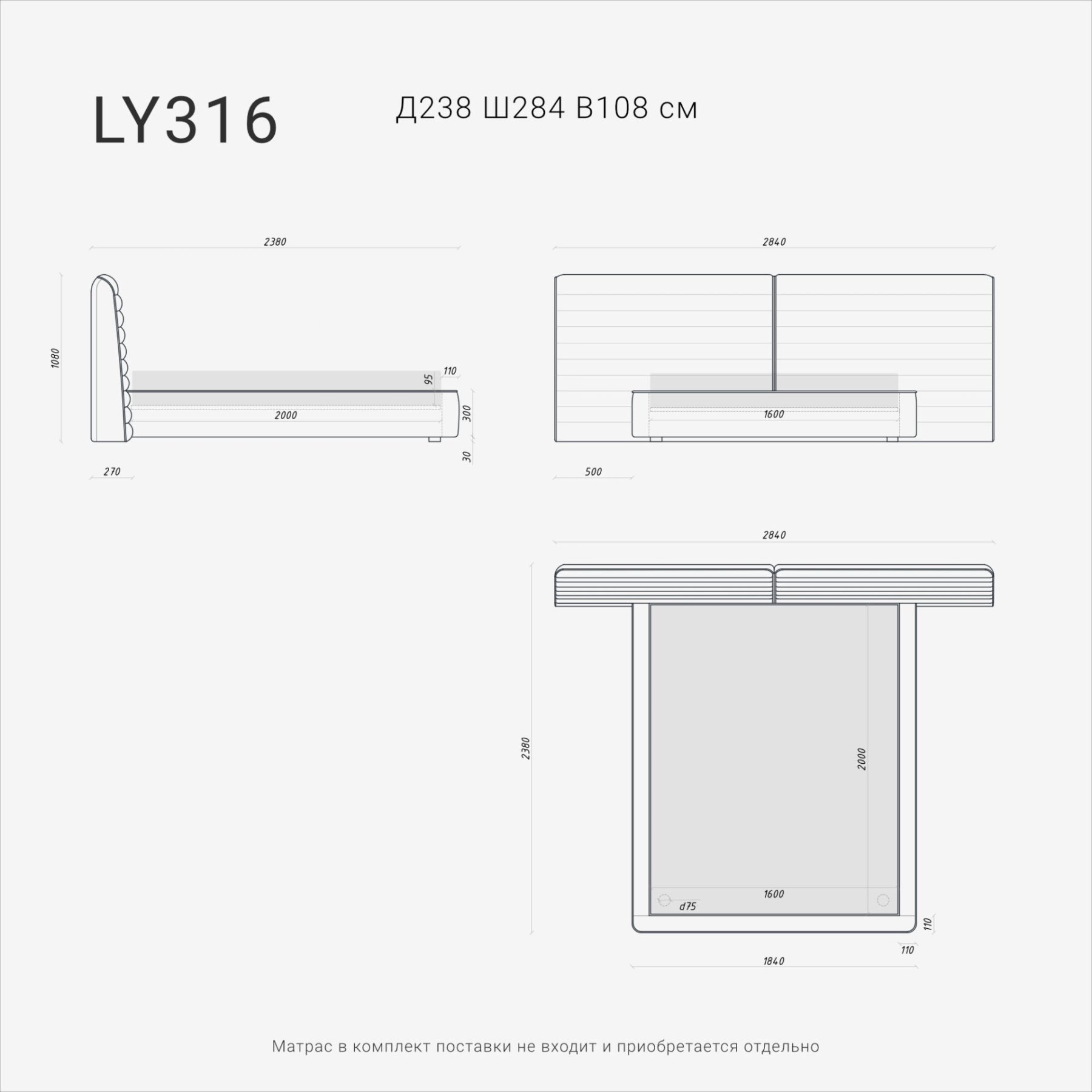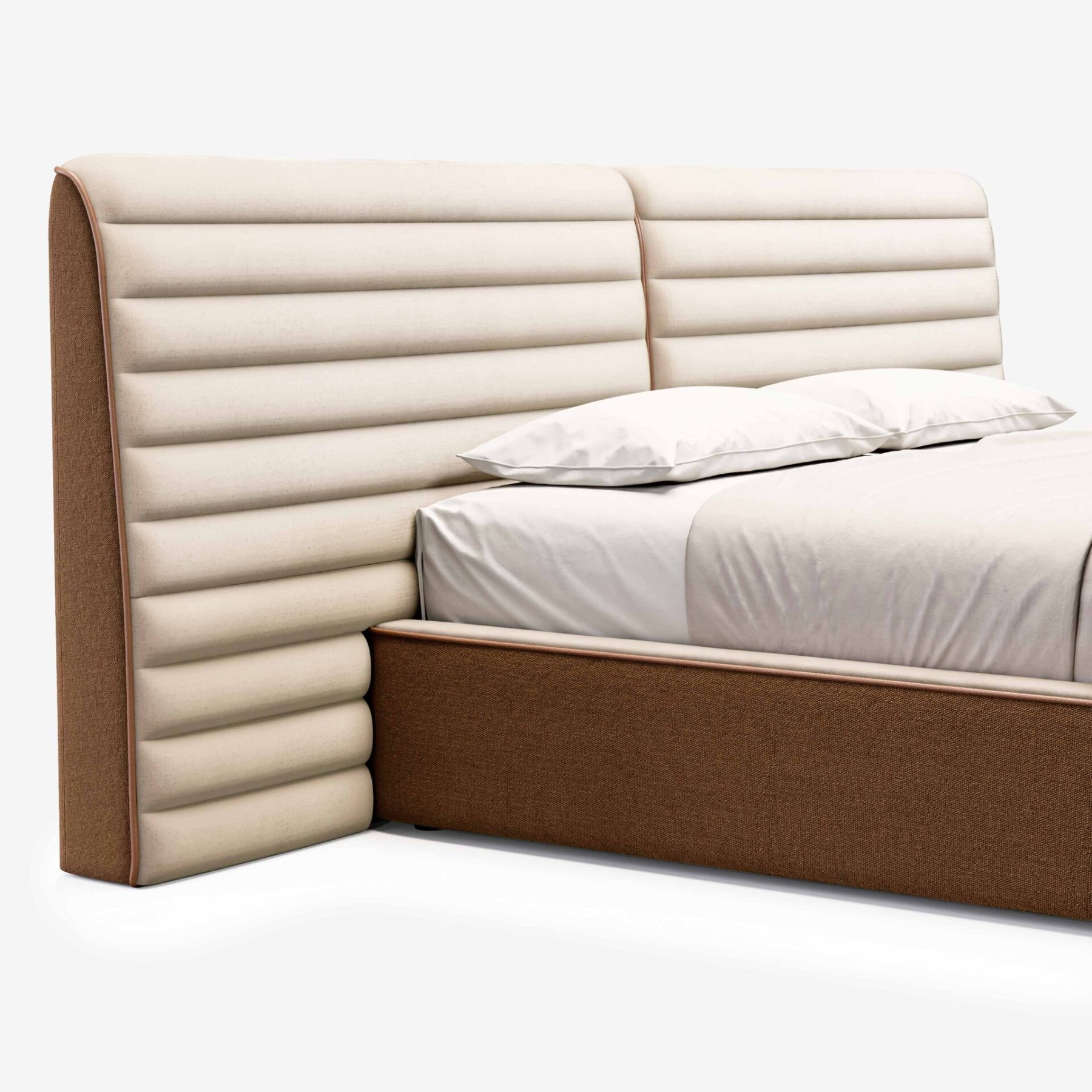 Изголовье с горизонтальной строчкой и мягкий кант подчеркивают сдержанную элегантность модели.