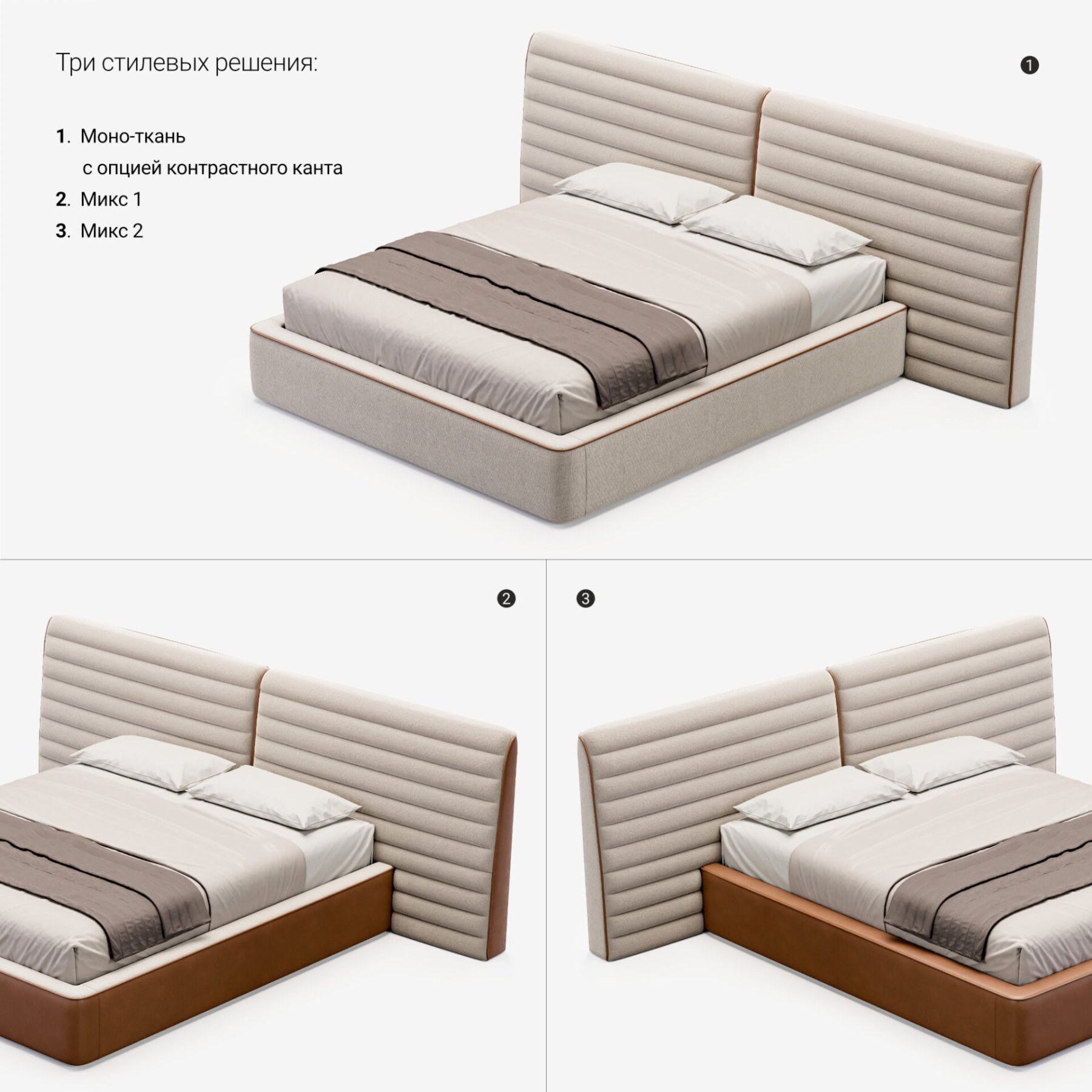 На выбор — три конфигурации изголовья: вровень с основанием или с боковыми выступами на 18 или 50 см для большего простора.