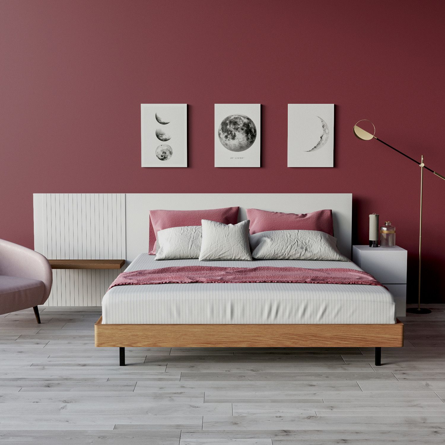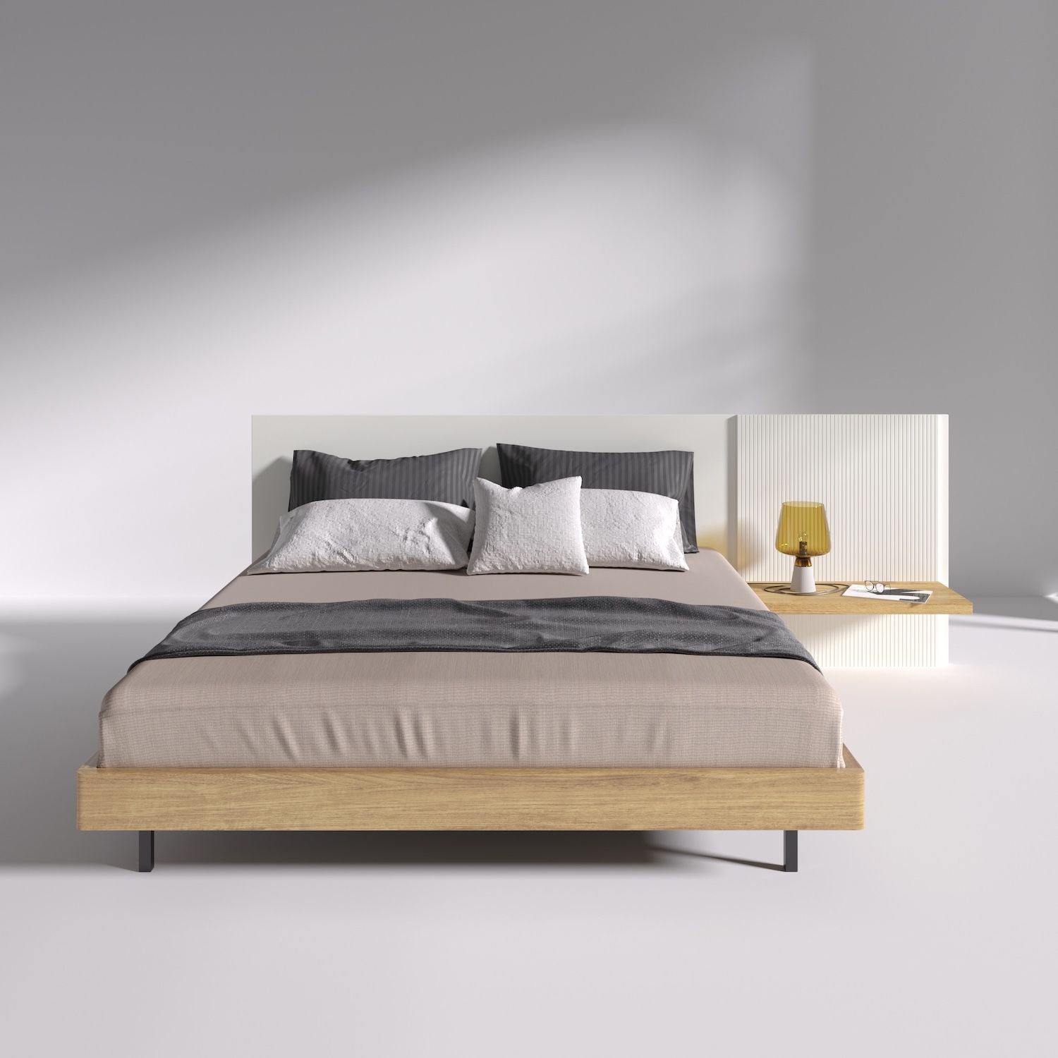 Ортопедическая решетка для матраса в комплекте. Расположение тумбы возможно как слева, так и справа, на выбор.  Размеры спального места: Ш.180 см, Г.200 см. Каркас кровати и подвесная полка-лак, изголовье-эмаль белая  ral 9003, ножки-эмаль черная ral 9011