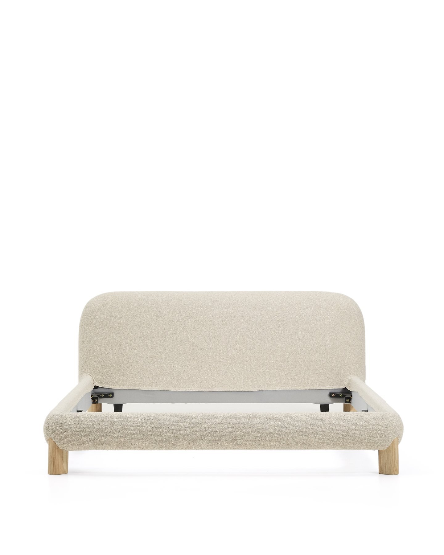 Эта кровать со съемным чехлом из ткани букле переосмысливает современную элегантность благодаря округлому дизайну, который простирается от каркаса до изголовья и ножек, создавая мягкий и уютный силуэт, способствующий сну. Ножки из массива ясеня, тщательно спроектированные так, чтобы выступать над чехлом, добавляют изысканности и оригинальности, создавая визуальный эффект мягкой кровати, несмотря на то, что чехол полностью съемный. Внутри каркаса сочетаются дерево и пена разной плотности.