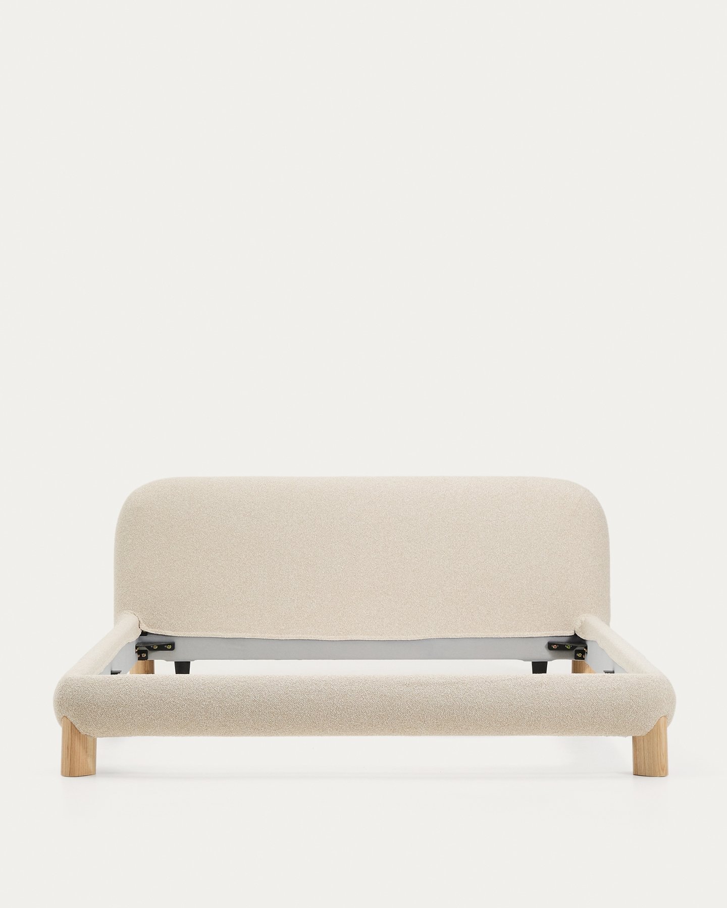 Эта кровать со съемным чехлом из ткани букле переосмысливает современную элегантность благодаря округлому дизайну, который простирается от каркаса до изголовья и ножек, создавая мягкий и уютный силуэт, способствующий сну. Ножки из массива ясеня, тщательно спроектированные так, чтобы выступать над чехлом, добавляют изысканности и оригинальности, создавая визуальный эффект мягкой кровати, несмотря на то, что чехол полностью съемный. Внутри каркаса сочетаются дерево и пена разной плотности.