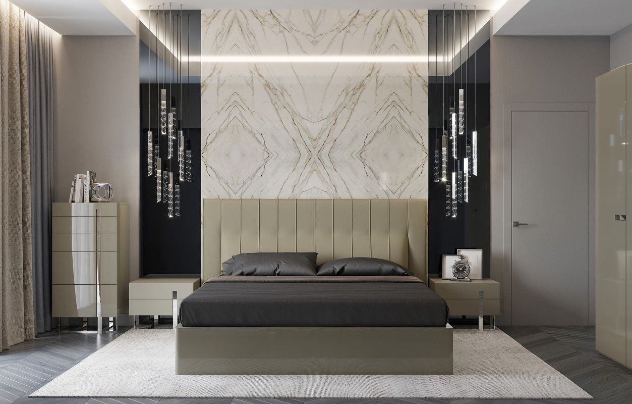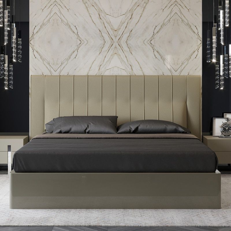 Фигурное изголовье имеет строгий силуэт и декорировано вертикальным кантом. База кровати имеет закругленные углы — они безопасны и удобны.