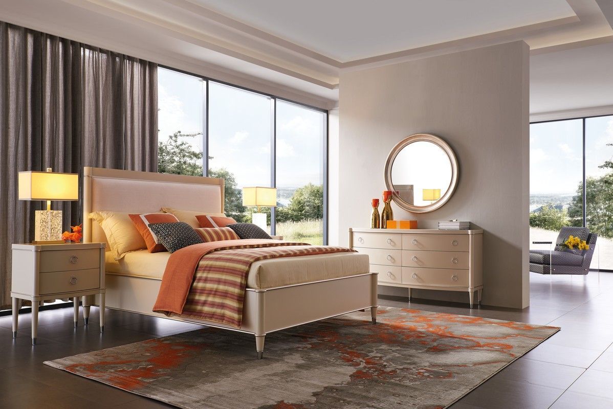 Высокая кровать от итальнякого бренда Fratelli Barri с прямыми ножками и мягким изголовьем в стиле неоклассика. Основание кровати полностью в отделке бежевый матовый лак. На ножках металлические колпачки.