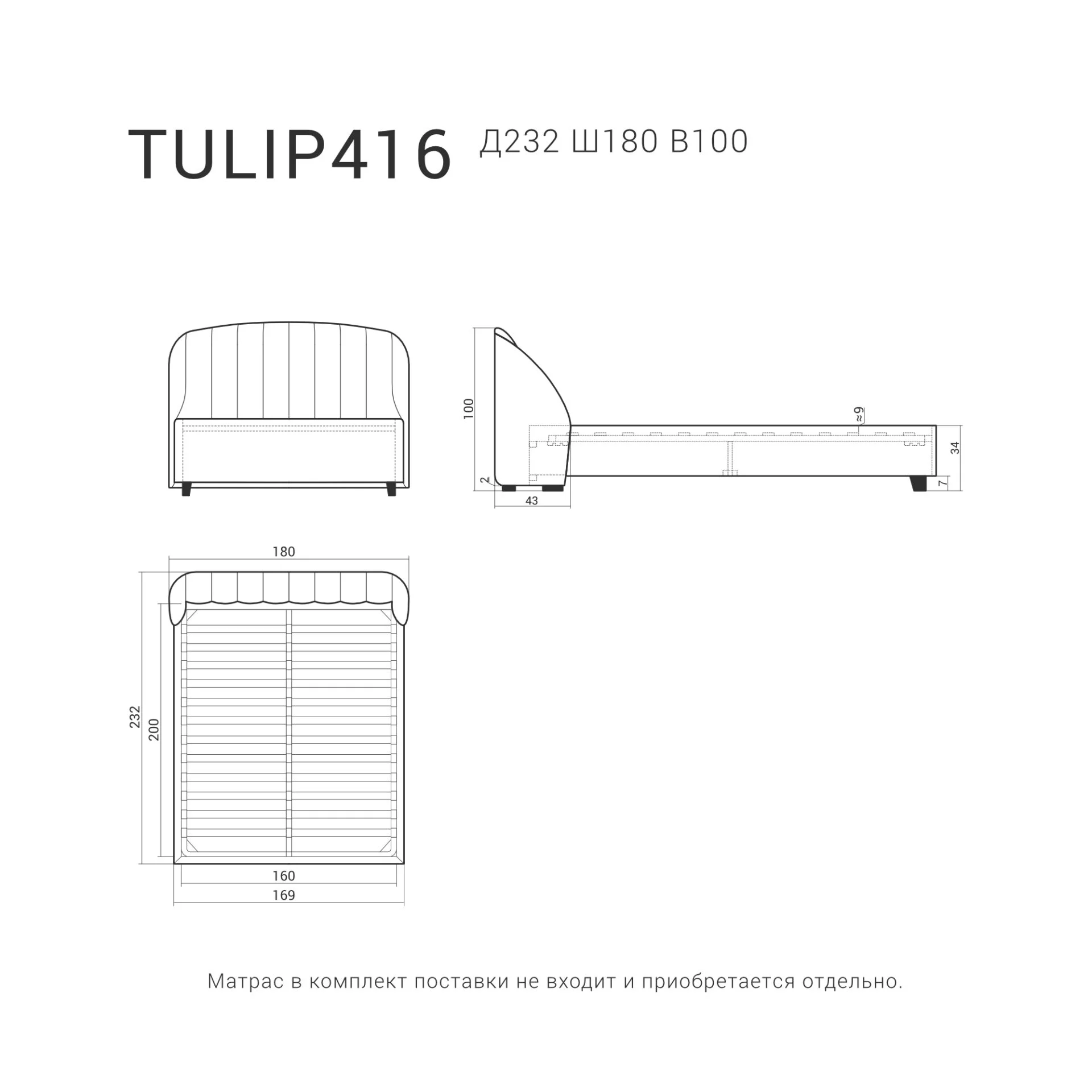 • Спальное место (см): 160 х 200