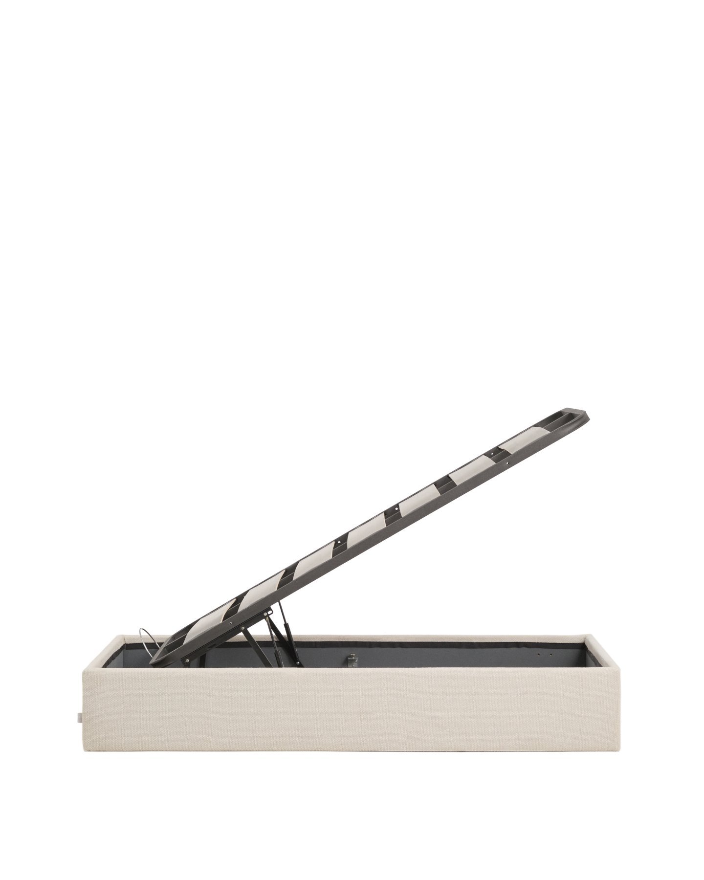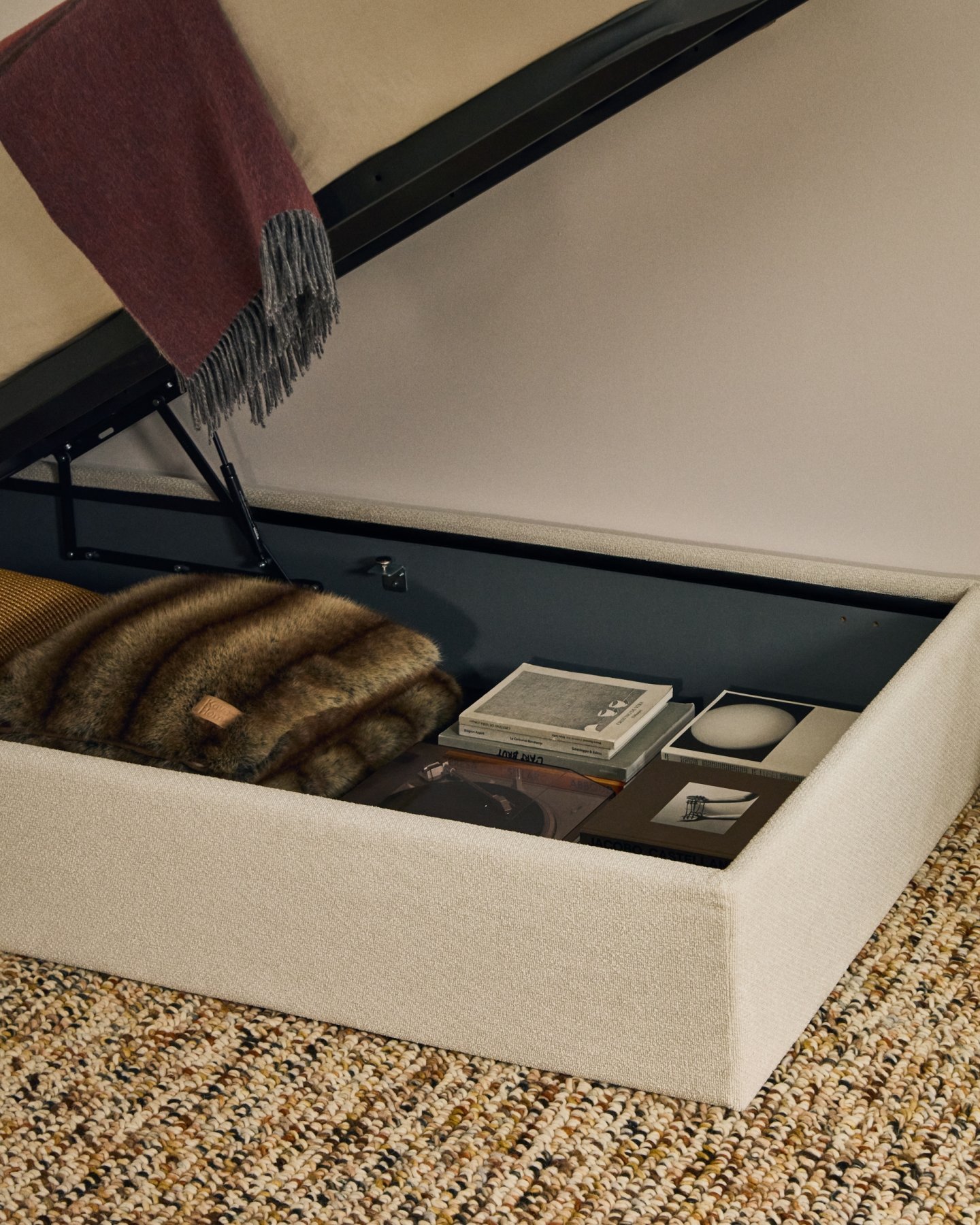 Основание кровати-пуфа Nelzi со съемным чехлом сочетает в себе дизайн и функциональность, позволяя максимально эффективно использовать пространство, сохраняя при этом лаконичный внешний вид. Система открывания с газовым поршнем и открытая планировка без перегородок позволяют максимально увеличить объем для хранения и упростить организацию пространства. Чехол из шенилла с мелкой структурой имеет мягкую текстуру и приятный на ощупь материал. Прочная, устойчивая к пятнам ткань позволяет легко удалять мех, что облегчает уход за кроватью.