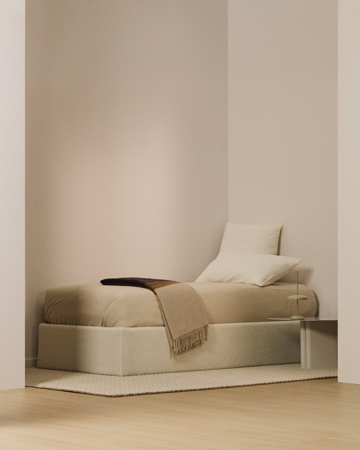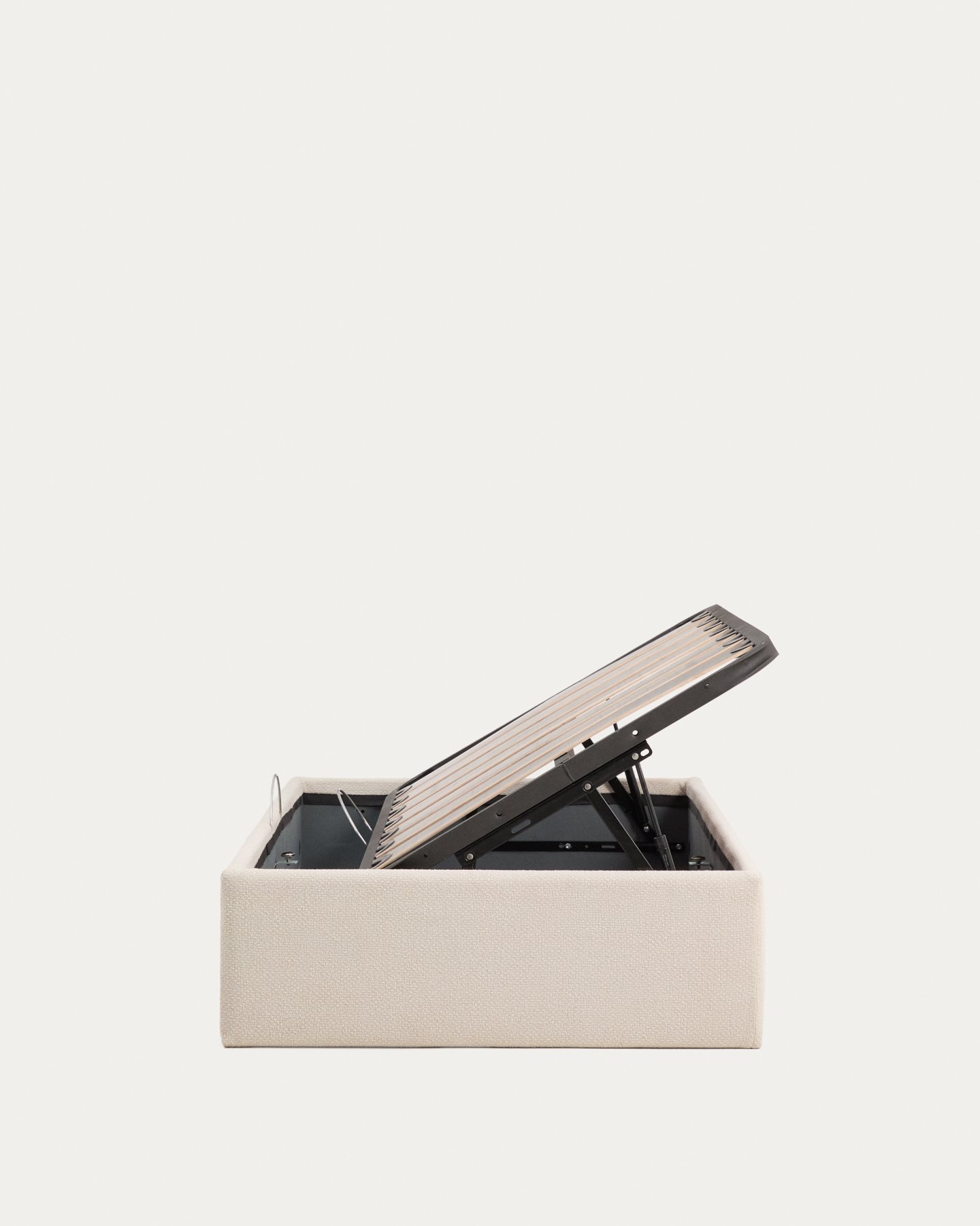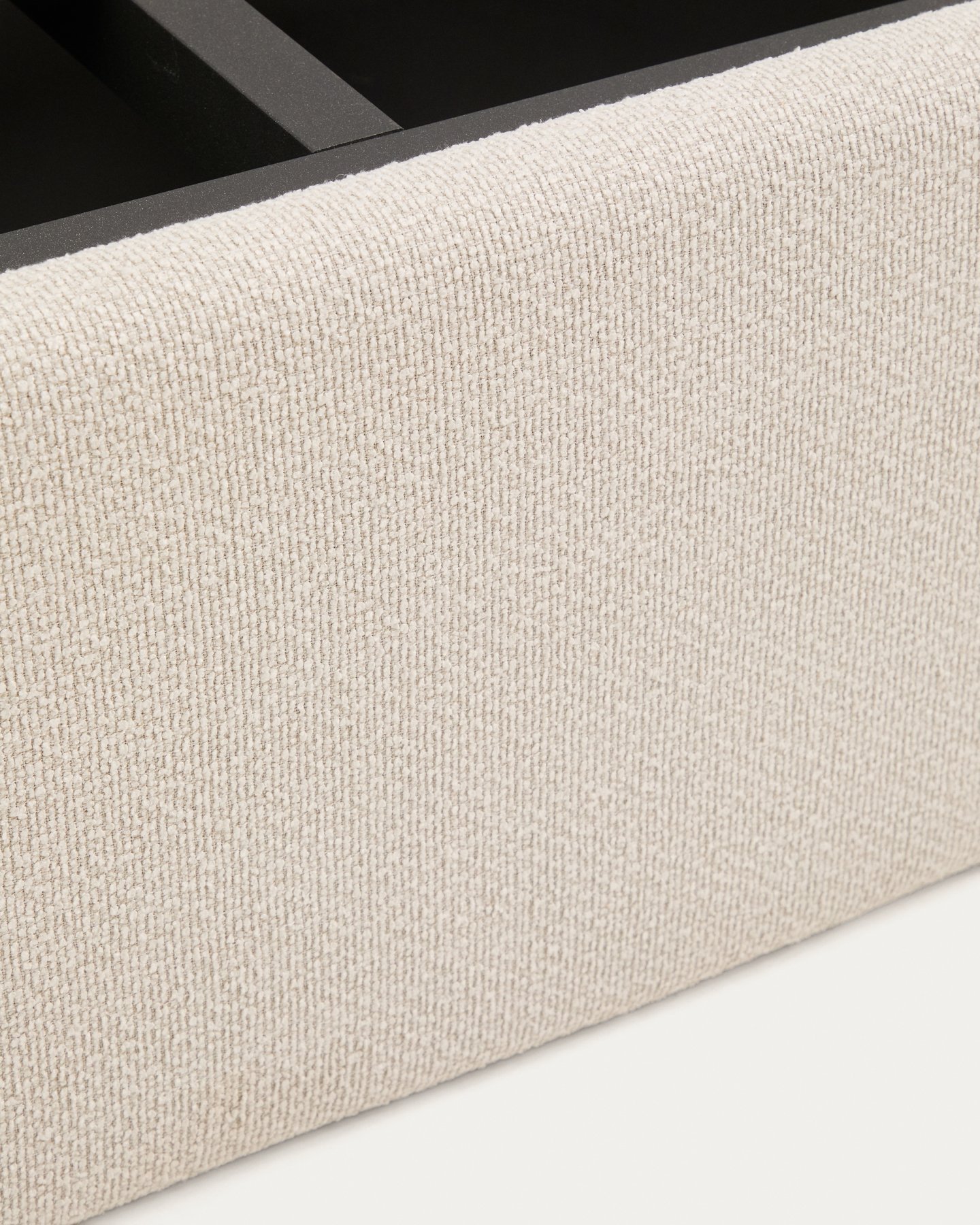 Основание кровати-пуфа Nelzi со съемным чехлом сочетает в себе дизайн и функциональность, позволяя максимально эффективно использовать пространство, сохраняя при этом лаконичный внешний вид. Система открывания с газовым поршнем и открытая планировка без перегородок позволяют максимально увеличить объем для хранения и упростить организацию пространства. Чехол из шенилла с мелкой структурой имеет мягкую текстуру и приятный на ощупь материал. Прочная, устойчивая к пятнам ткань позволяет легко удалять мех, что облегчает уход за кроватью.