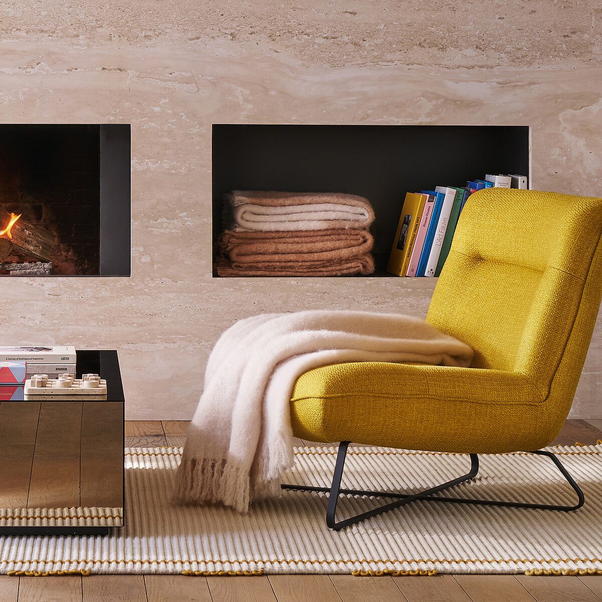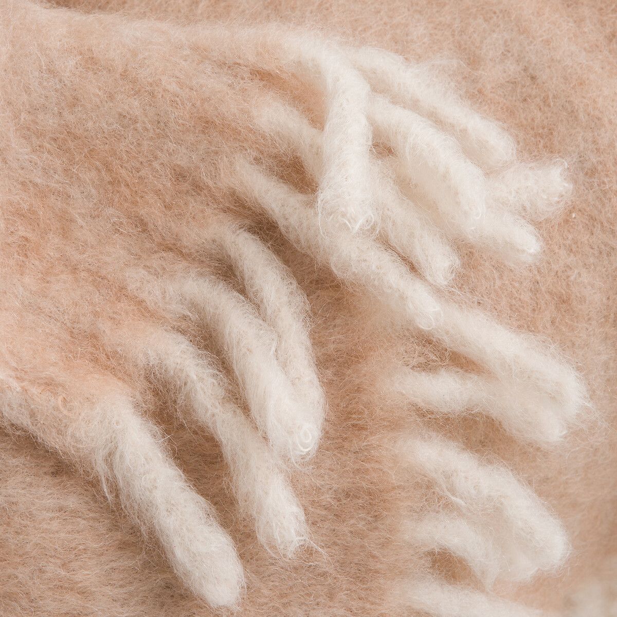 Плед Tzara из шерсти и полиамида светло-каштанового цвета и экрю. Тонкая ткань, теплая и комфортная. Изготовлен в Испании.