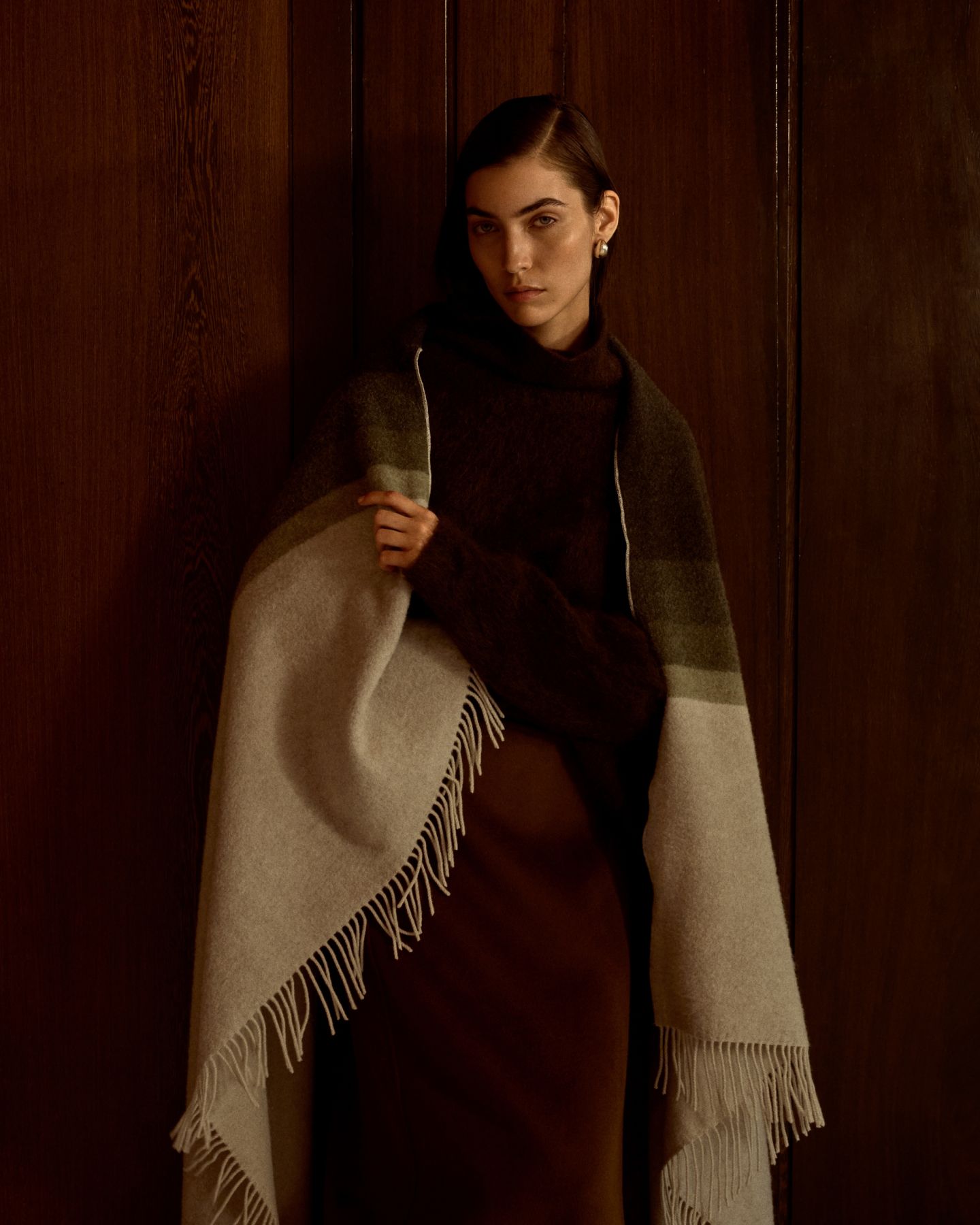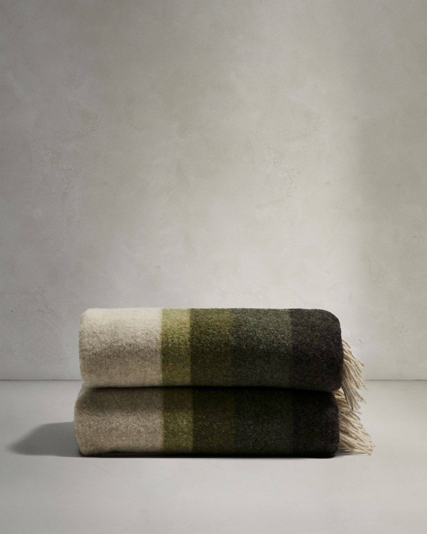 Плед, отличающийся мягкой и тёплой текстурой, призван добавить комфорта и элегантности любому помещению. Шерстяная ткань на 55% состоит из переработанной шерсти, сертифицированной поставщиком. Декоративная бахрома добавляет изысканную деталь, которая дополняет дизайн и добавляет визуальную динамику. Это изделие было изготовлено эксклюзивно для Kave Home компанией Manteco®, известным итальянским брендом, специализирующимся на высококачественных тканях из переработанной шерсти. Процесс пошива обеспечивает роскошные ощущения и безупречный внешний вид, созданный для тех, кто ценит тепло и стиль. Идеально дополнит диваны, кресла и кровати, это универсальный и вневременной выбор, который идеально подойдёт для уютных моментов в любой обстановке.