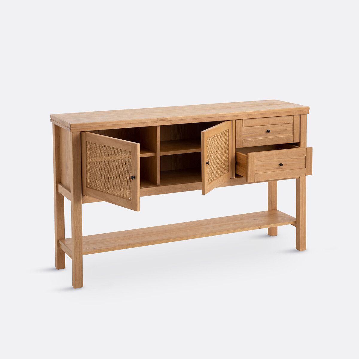 Эта коллекция мебели состоит из современных элегантных изделий, сочетающих массив сосны с легкой шлифовкой и плетение в скандинавском ретро стиле.