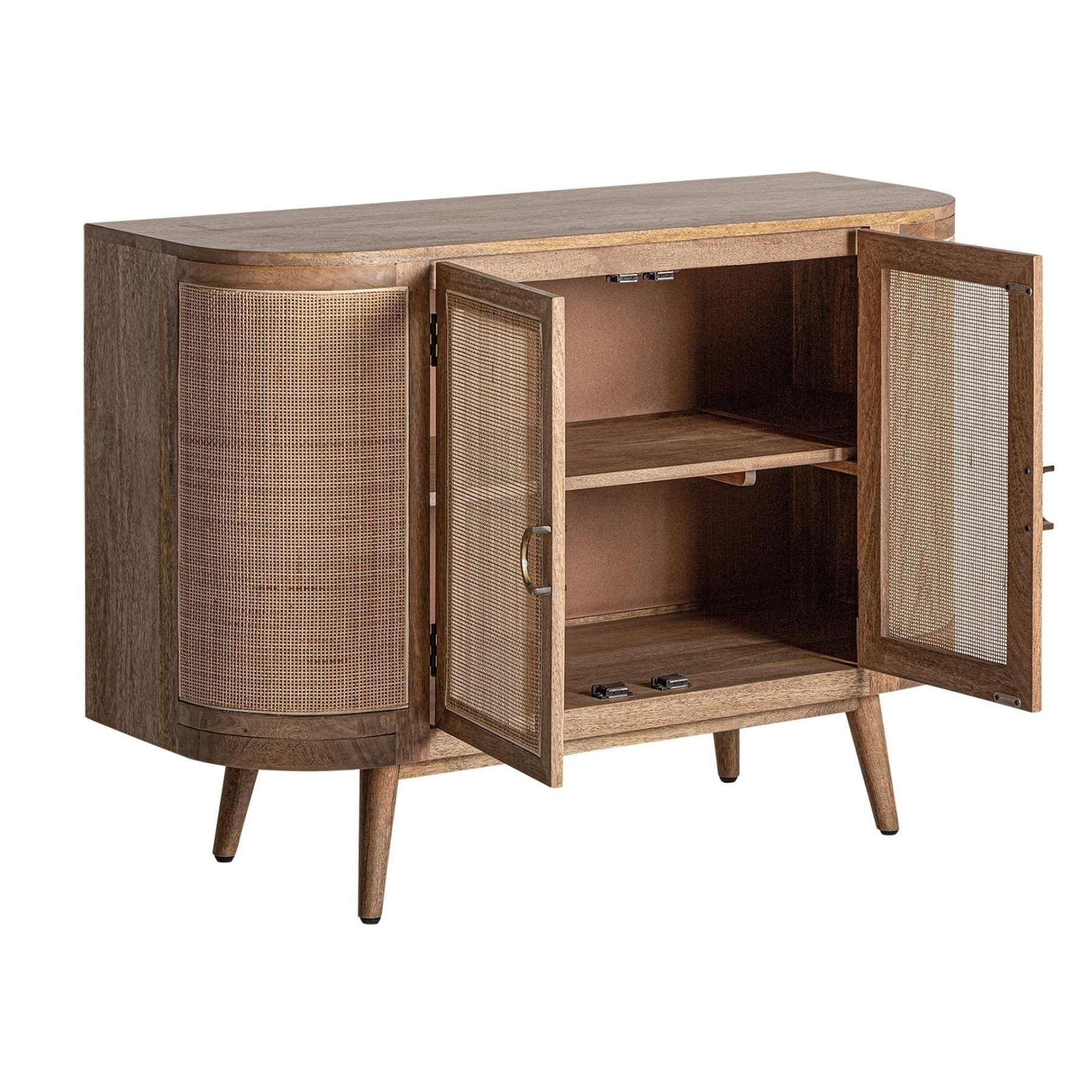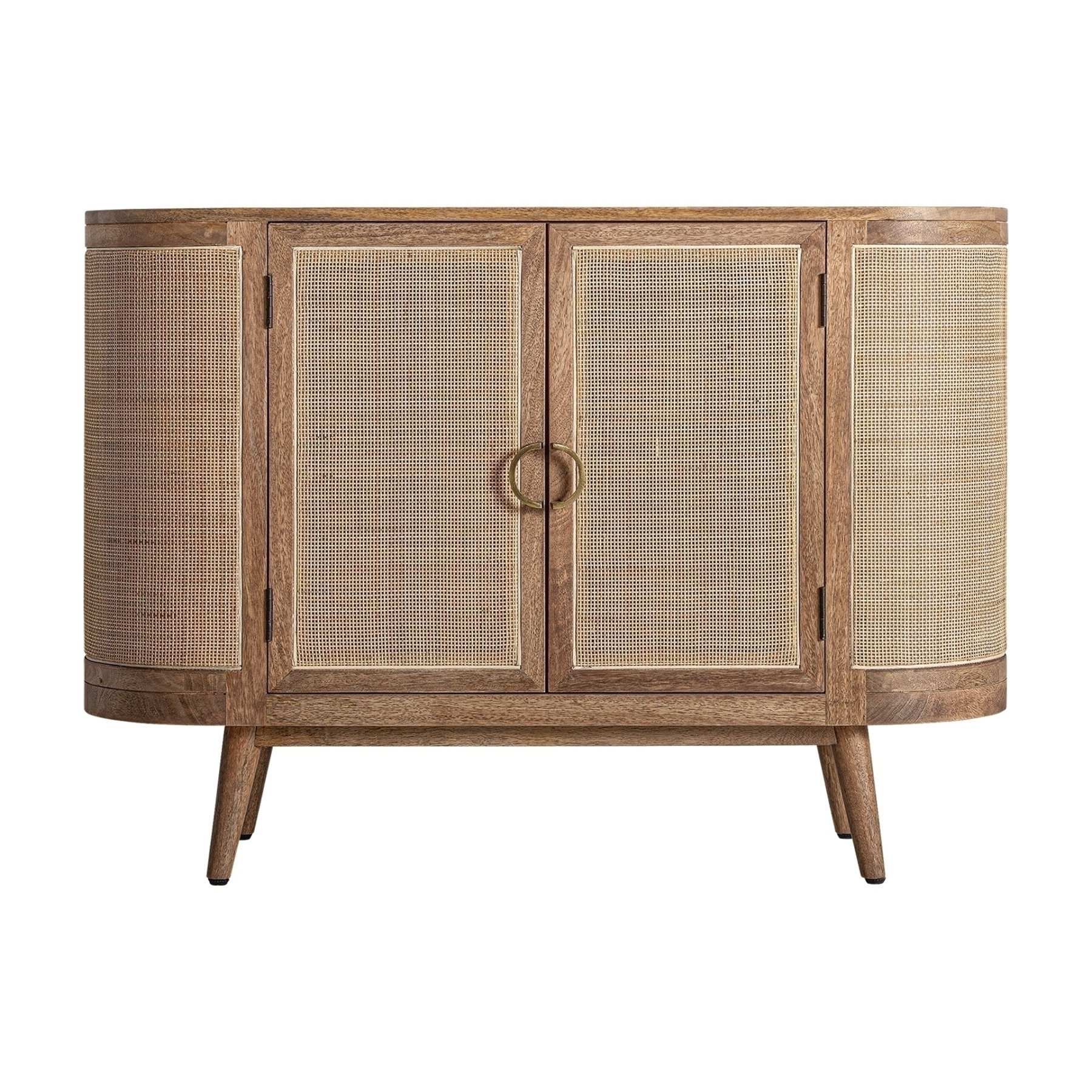 Буфет Beckley, натуральный цвет, скандинавский стиль. Изготовлен из дерева манго и плетения.