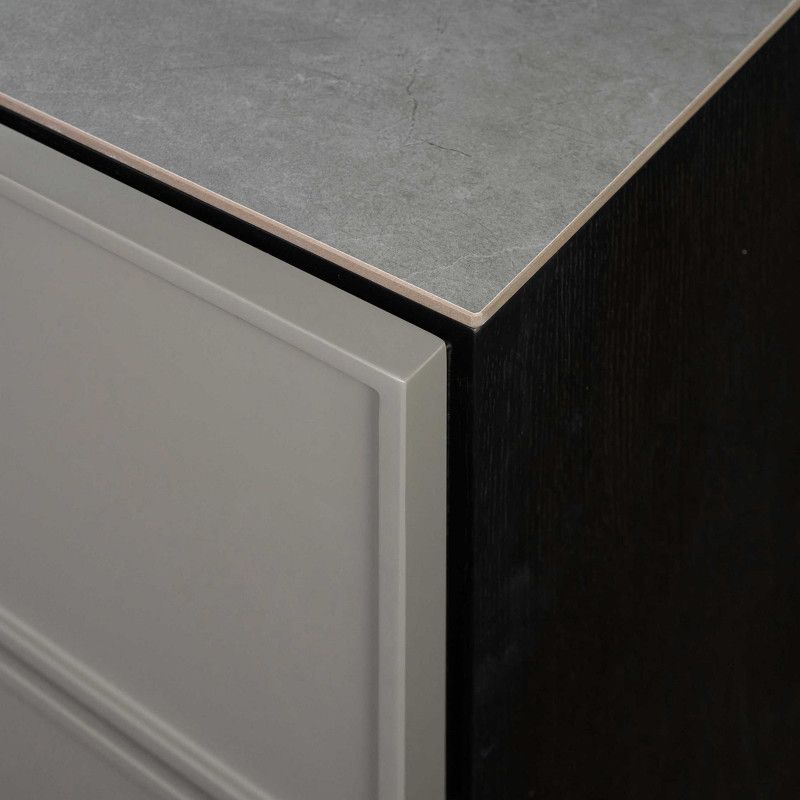 Тумбочка оснащена 2 дверцами и 3 выдвижными ящиками с системой закрывания soft-closing.