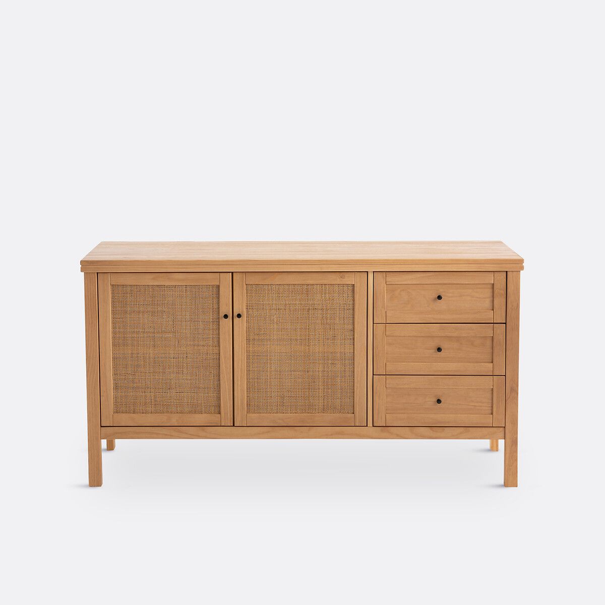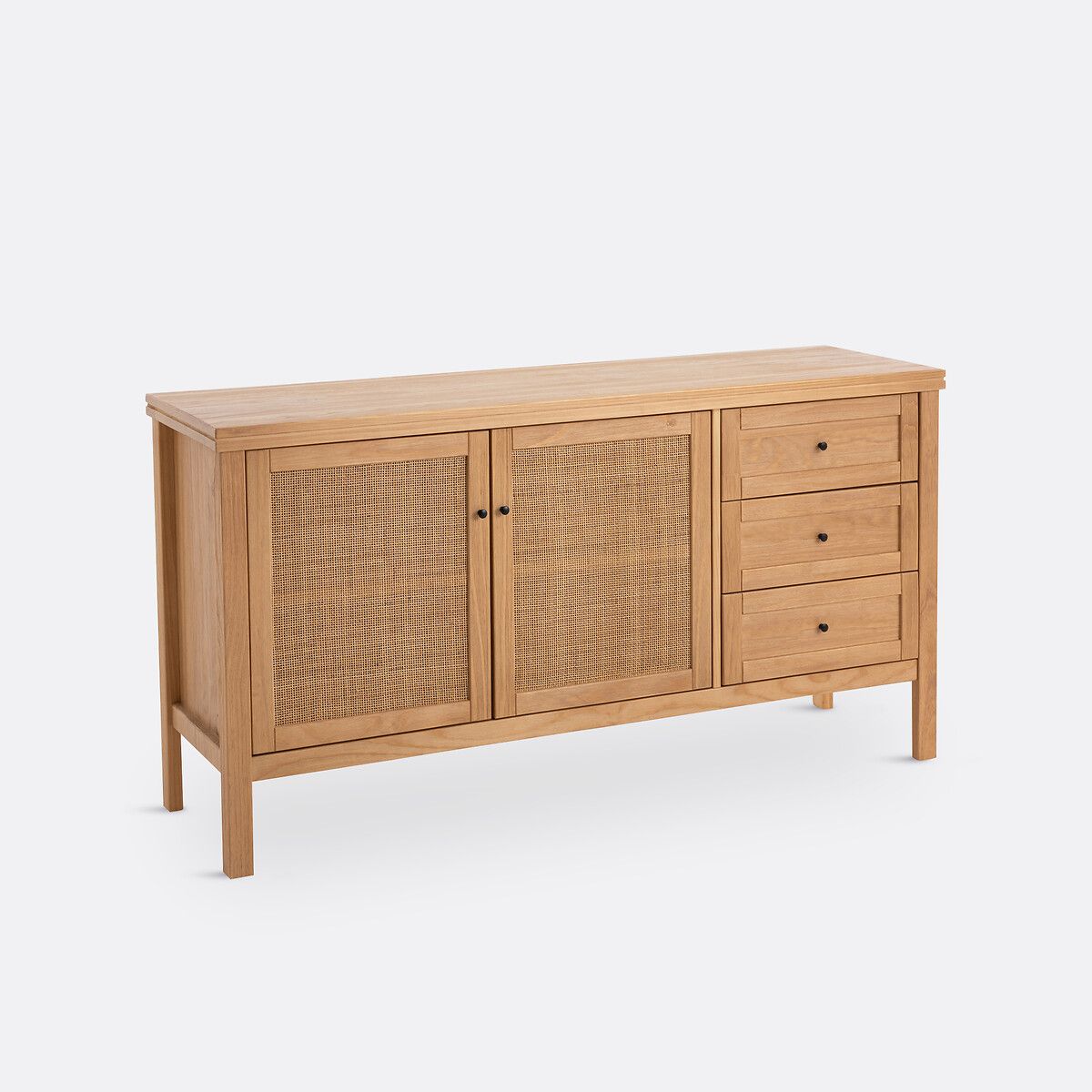 Эта коллекция мебели состоит из современных элегантных изделий, сочетающих массив сосны с легкой шлифовкой и плетение в скандинавском ретро стиле.