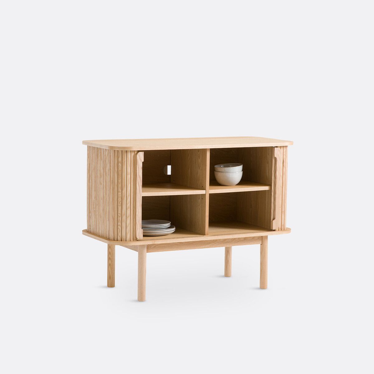 — Две раздвижные дверцы со шторкой из массива ясеня FSC® с НЦ-лакировкой