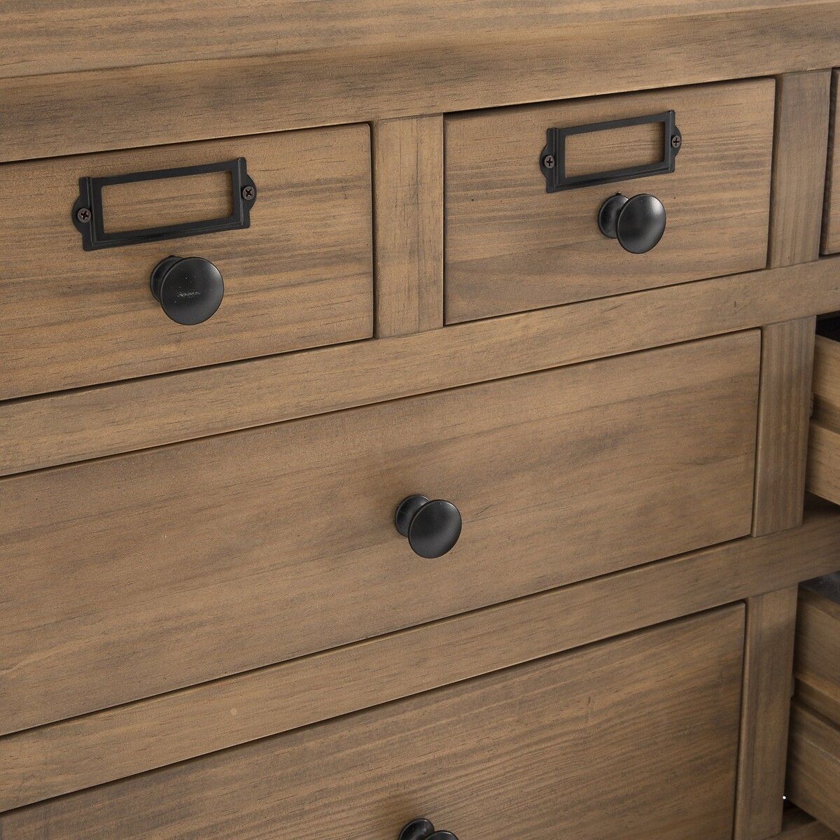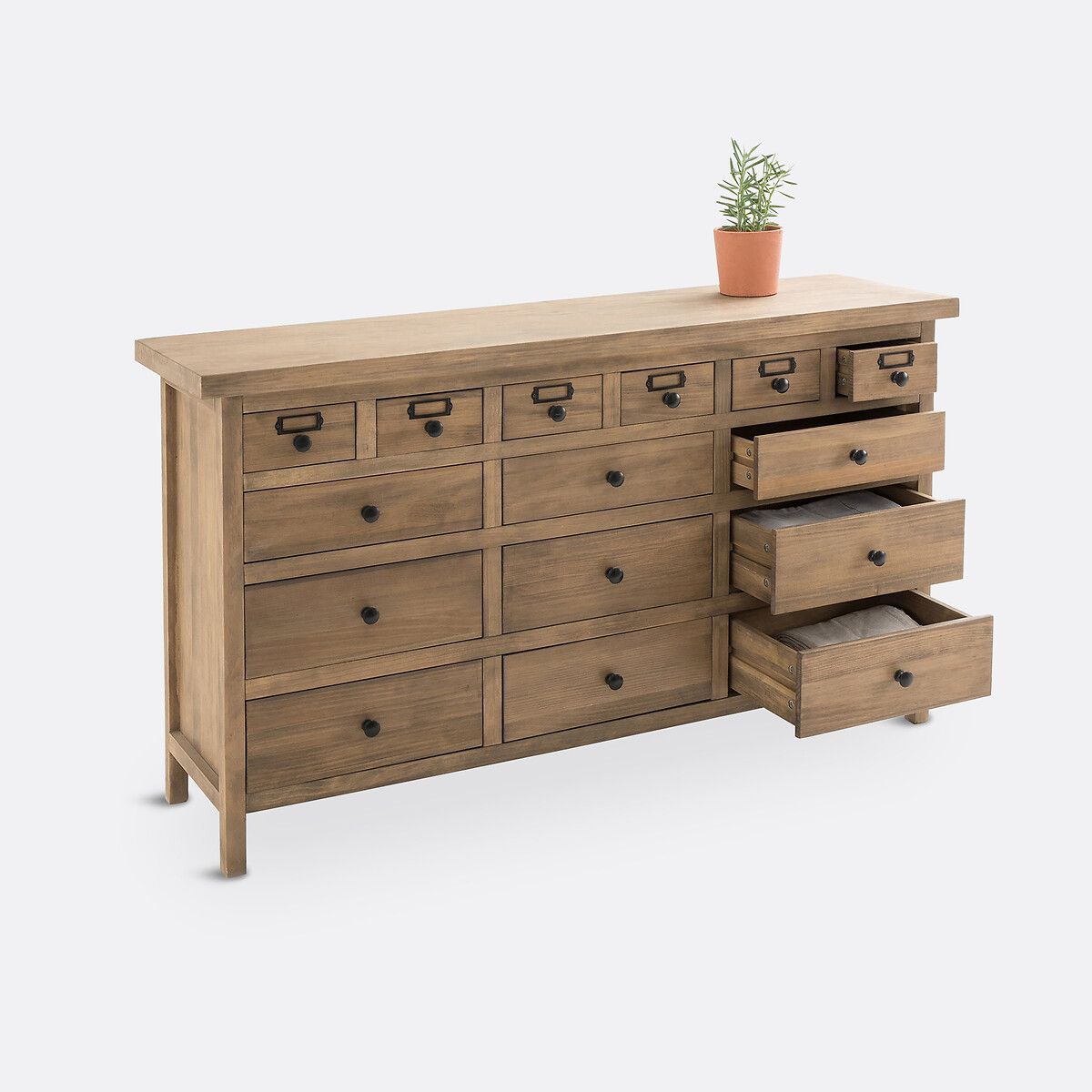 В стилистике профессиональной мебели прошлых лет, этот буфет с 15 ящиками будет практичен в гостиной для хранения столового белья, посуды.