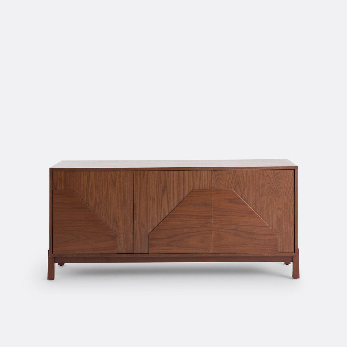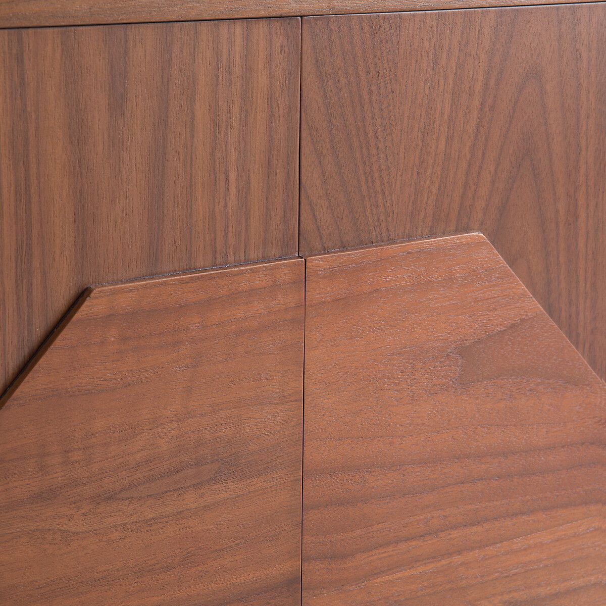 — Каркас и полки из МДФ, шпонированной ореховым деревом, и МДФ, шпонированной сосной, с окраской под ореховое дерево