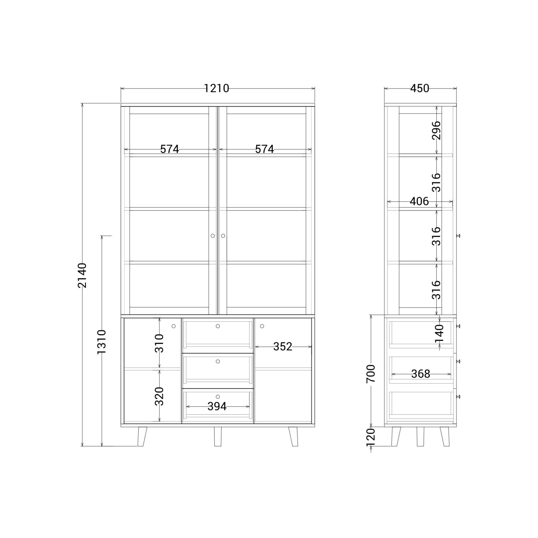 — Полки верхней секции из МДФ, покрыты натуральным шпоном дуба и выдерживают нагрузку до 30 кг;