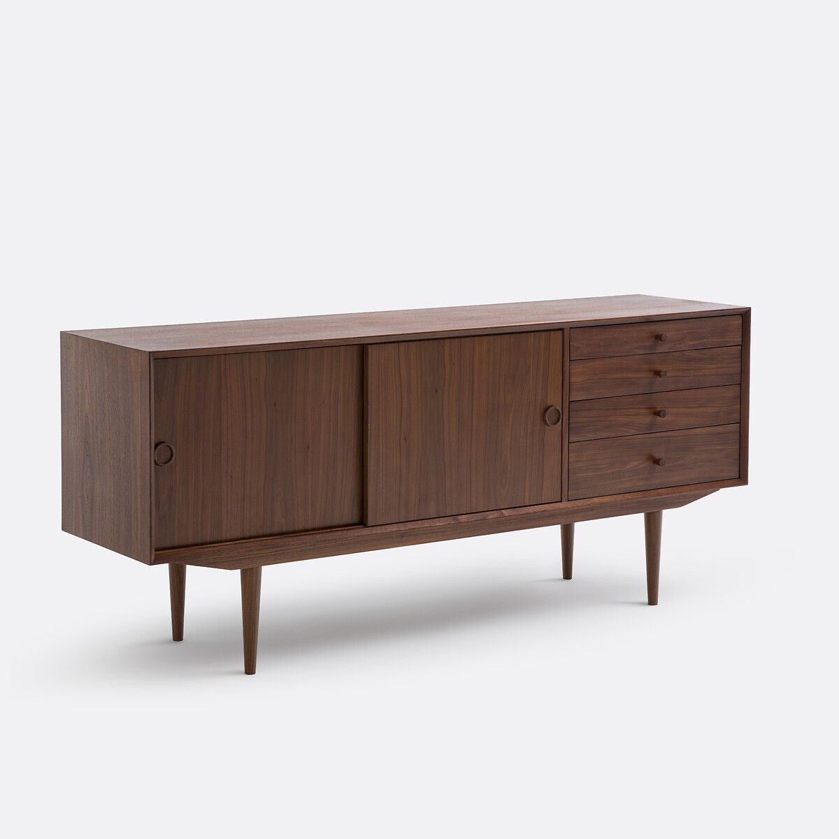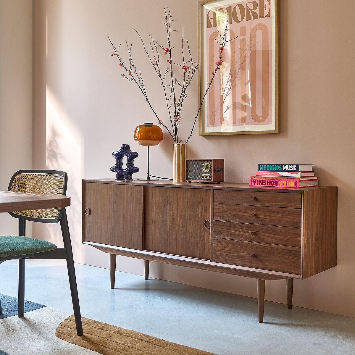 Линии в винтажном стиле, веретенообразные ножки, глубокий цвет орехового дерева... Мебель-анфилада Quilda сочетает стиль и функциональность. Творение La Redoute Intérieurs