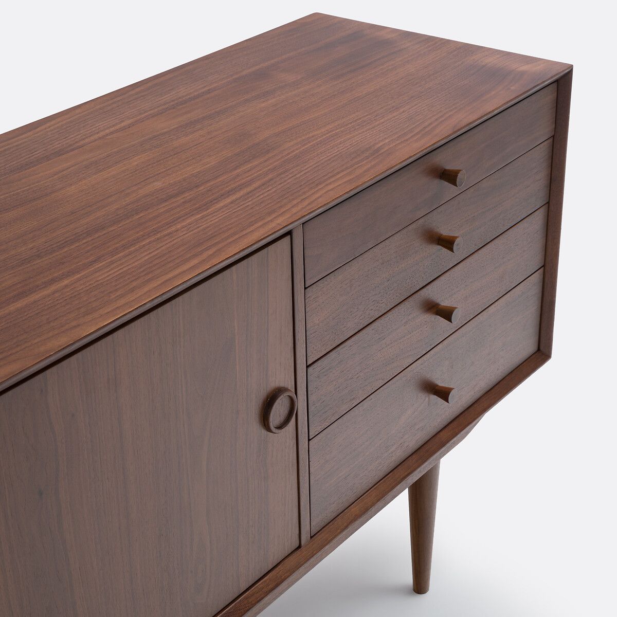 — Каркас, дверцы и ящики из орехового дерева и МДФ, шпонированного ореховым деревом.