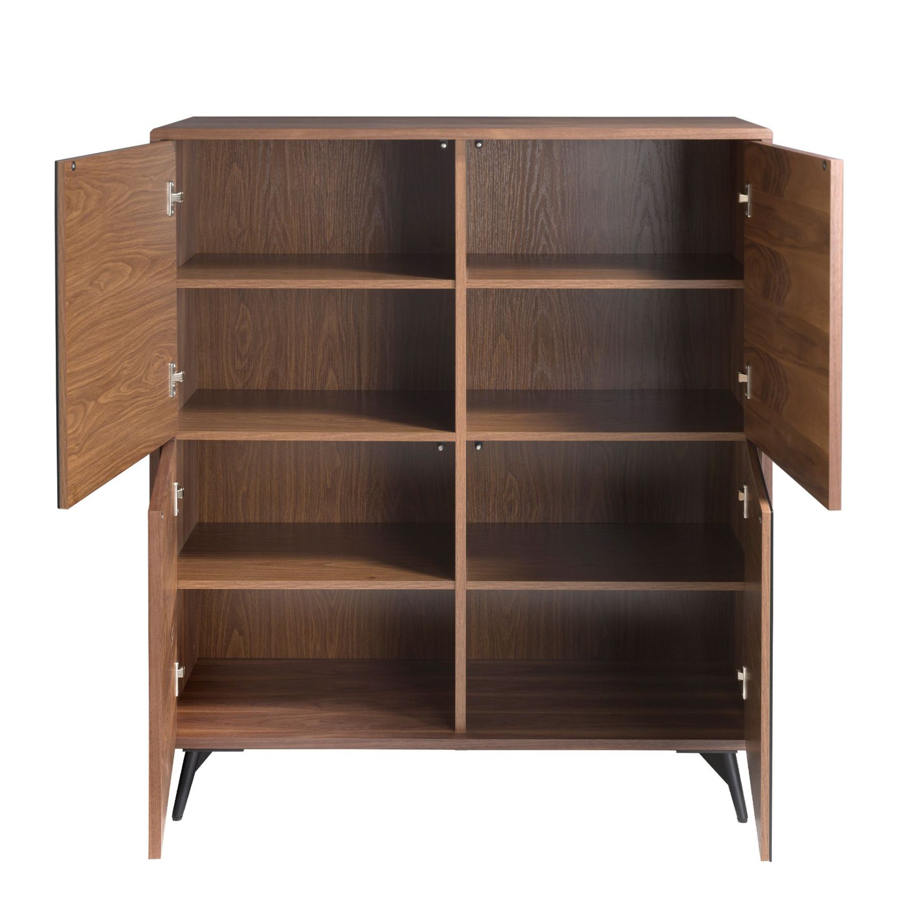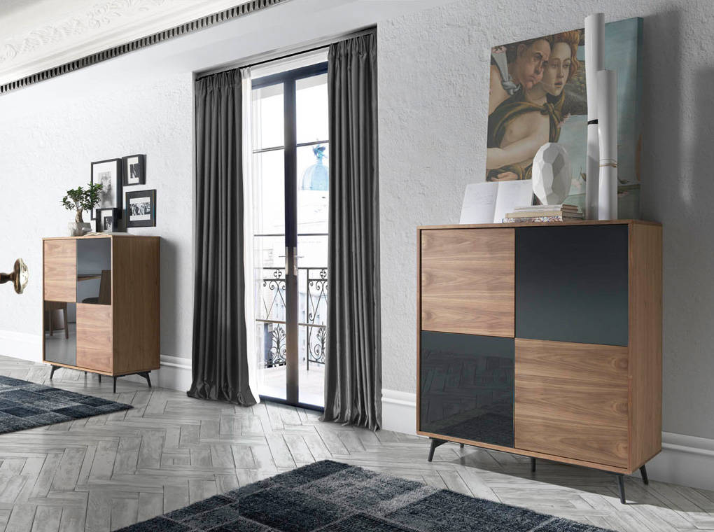 Буфет высокий 1403 I — шахматная игра контрастов для стильного европейского интерьера от фабрики от фабрики Angel Cerda. Буфет моментально притягивает взгляд. Квадратные фасады дверей, расставленные в шахматном порядке, выглядят ярко и необычно. А смелое сочетание стекла и дерева позволяет уверенно заявлять о том, что этот предмет мебели заслуживает находиться вдоль центральной стены в комнате. Буфет имеет практически квадратную форму (разница между высотой и шириной составляет всего 14 см). Фасадная сторона состоит из четырех дверей, где две сделаны из орехового шпона, а две — из закаленного ударопрочного стекла матового черного цвета. Все двери оснащены доводчиками на открывание и закрывание. Опора выполнена из металла, покрытого черной краской. Она имеет рамочную форму, крепится по всему периметру основания каркаса. Для надежности и устойчивости, у нее предусмотрено пять ножек — четыре по углам и одна в центре. Размеры буфета: ширина — 110 см, высота — 124 см, глубина — 45 см. Вес составляет 104 кг. Потребуется самостоятельная сборка. Рекомендуется участие двух человек. Инструкция и крепеж входят в комплектацию.