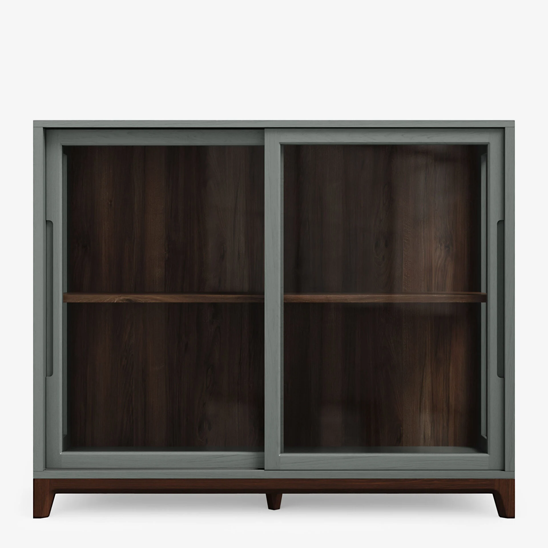 Лаконичный дизайн низкой витрины Case обуславливает легкость ее применения в благородных интерьерах – от классических до ультрасовременных. Боковые элементы и сдвижные фасады со стеклом предоставляют трехсторонний обзор содержимого и демонстрируют яркую текстуру дерева. Особенности: Удобные интегрированные ручки; Заметная текстура дерева на всех деталях, покрытых эмалью; На витрине установлены направляющие с регулировкой уровня фасадов и доводчиками; ; Нагрузка на каждую полку до 25 кг.