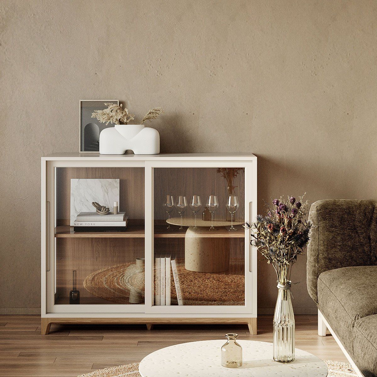 — Все внутренние детали витрины покрыты натуральным шпоном дуба;